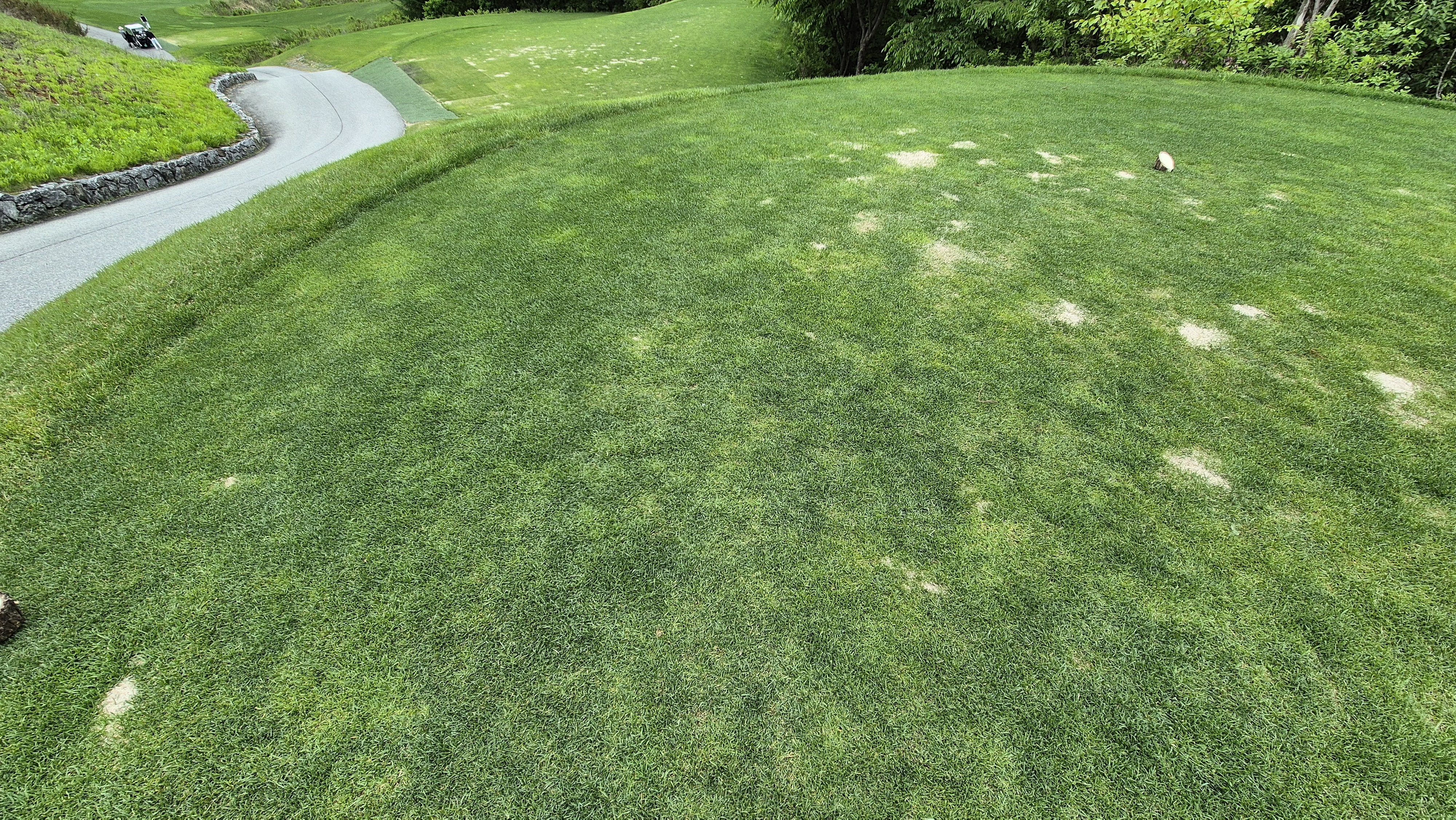 그린 관리는 괜찮은 수준입니다. 두 홀 정도 일부 구간에 바닥이 드러난 곳이 있긴 했는데 대부분은 느린 스피드 외에는 좋았습니다. 그린 주변 잔디도 일정한 높이로 관리되어서 어프로치 시 웨지사용이 부담스럽거나 하지는 않습니다.