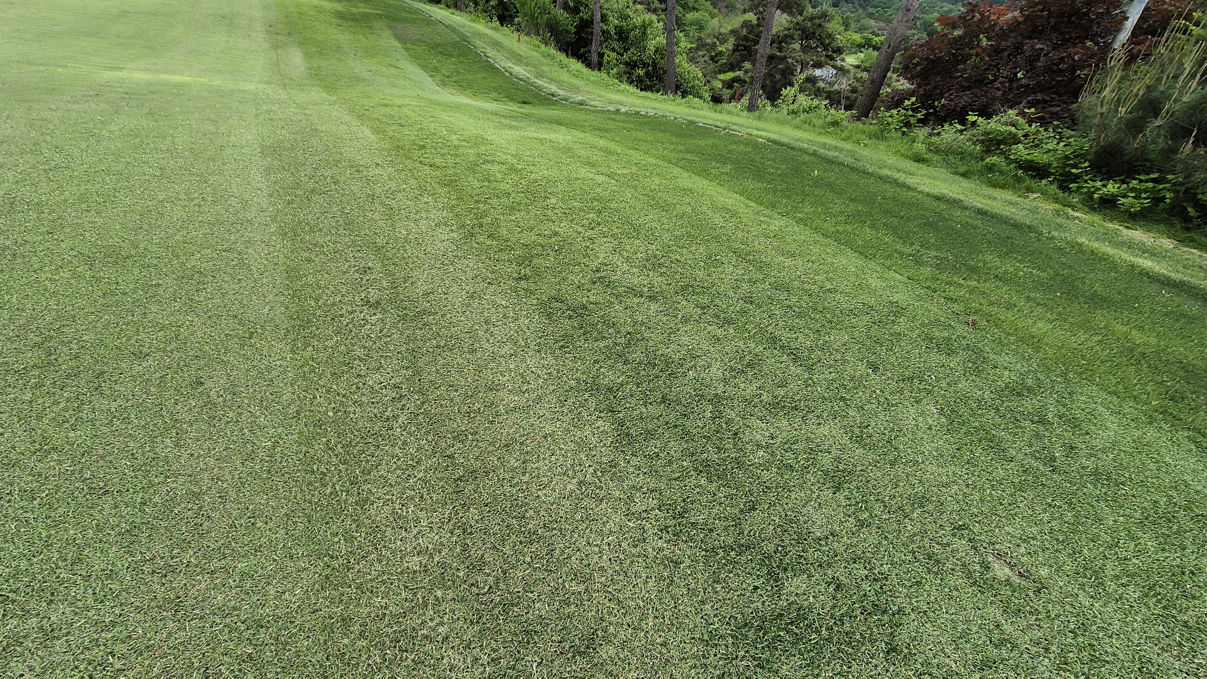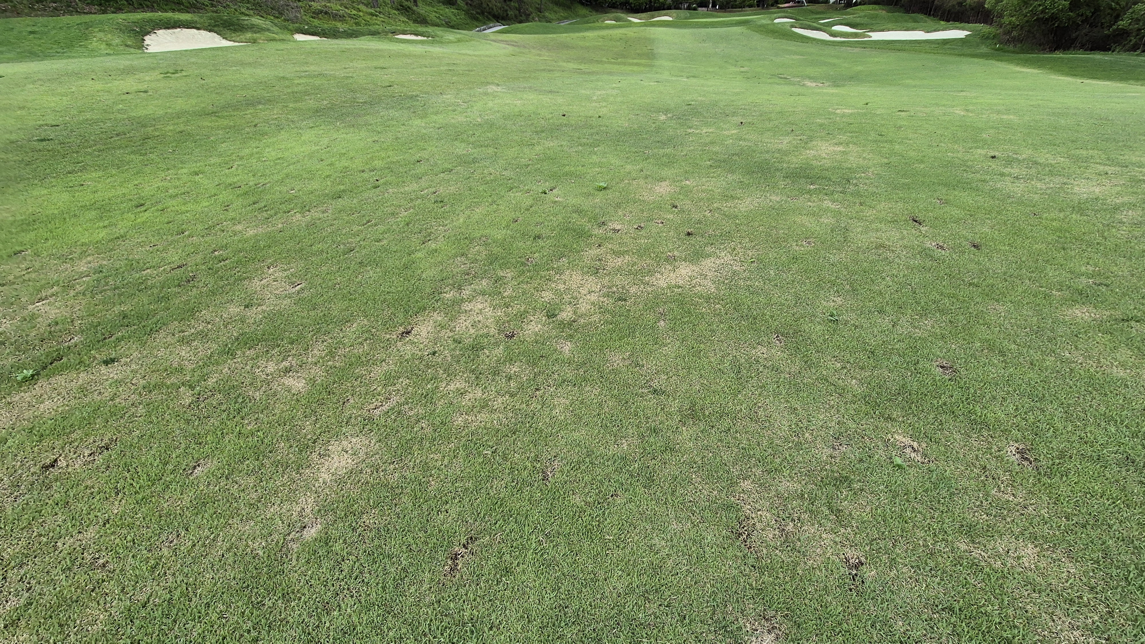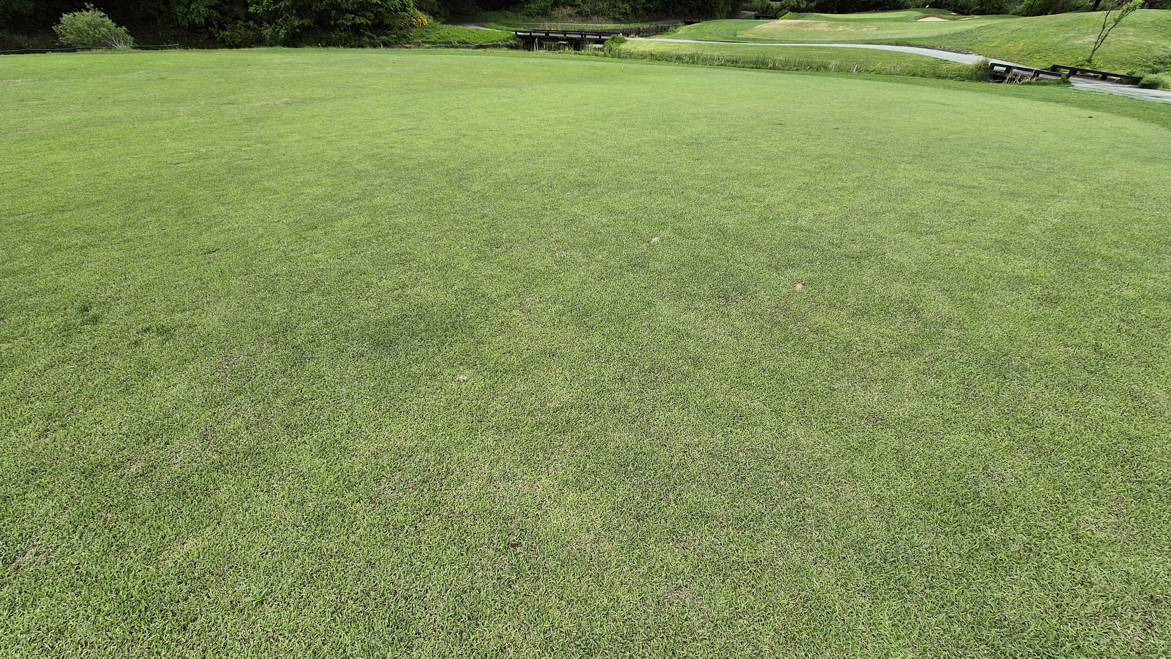 그린 관리는 괜찮은 수준입니다. 두 홀 정도 일부 구간에 바닥이 드러난 곳이 있긴 했는데 대부분은 느린 스피드 외에는 좋았습니다. 그린 주변 잔디도 일정한 높이로 관리되어서 어프로치 시 웨지사용이 부담스럽거나 하지는 않습니다.