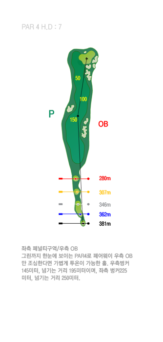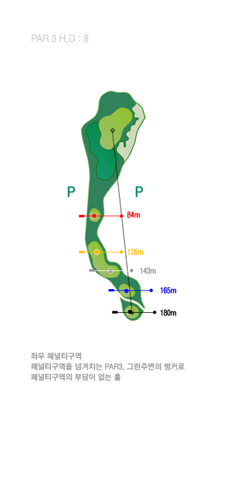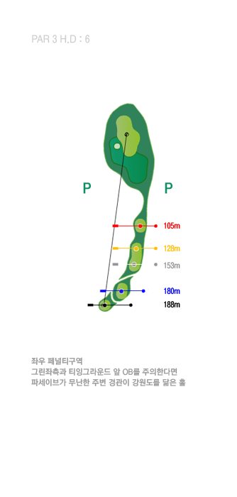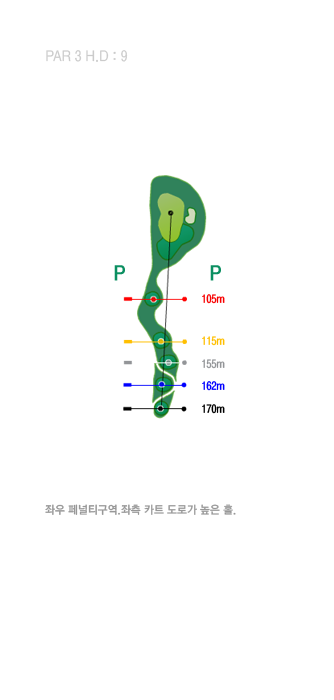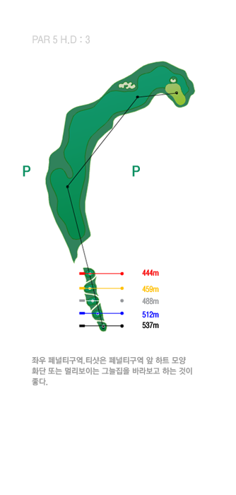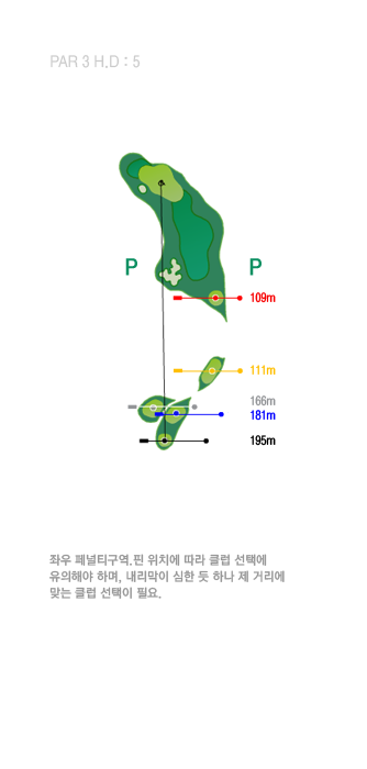 파3. 그린 좌측으로는 공간이 없으니 안전한 공략이 베스트.