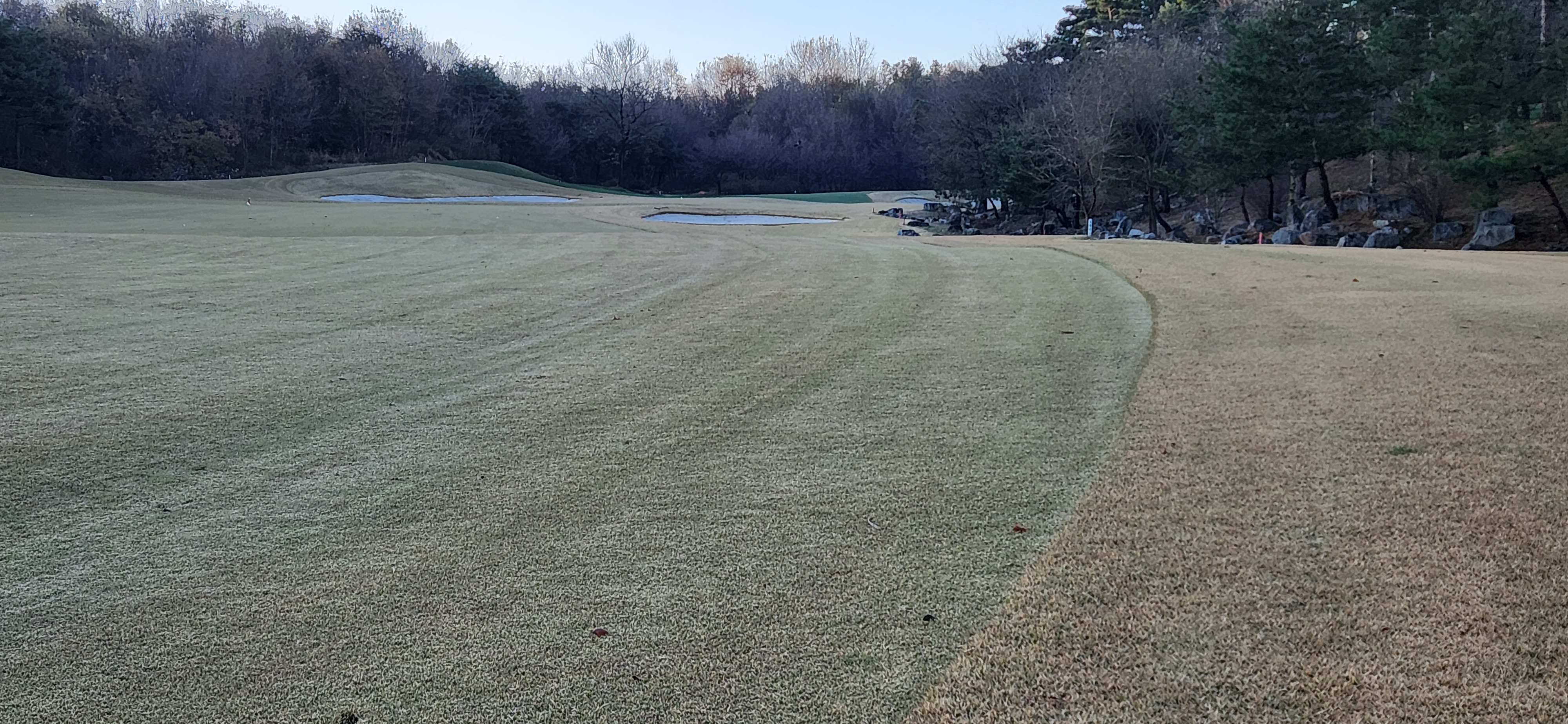 바로 위 사진 같은 구간은 제가 걸어 다닌 경로상에는 한 곳뿐이었고, 전반적으로 매우 좋은 수준의 페어웨이 관리상태였습니다.