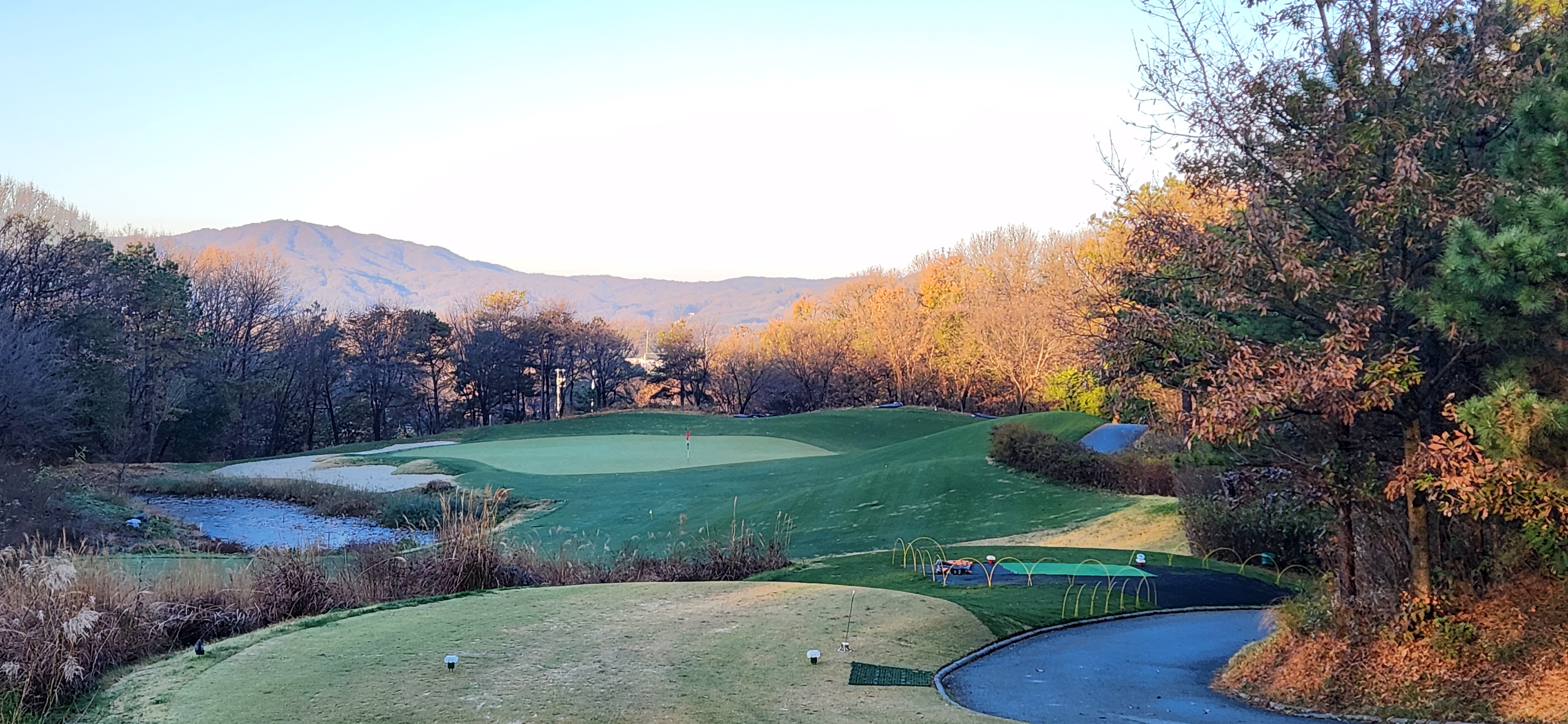 파 4, 5는 타깃방향을 다양하게 설정가능한 홀들이 다수 있었으며, 파 5의 경우 아일랜드 그린 및 계류지 등으로 2 온을 어렵게 만들어 장타자들에게 마냥 유리한 구장은 아닌 거 같았습니다.