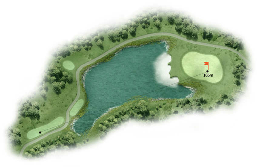 파4. 그린까지 250미터로 장타자는 원온시도 가능한 홀. 그린 왼쪽 끝 에이밍.