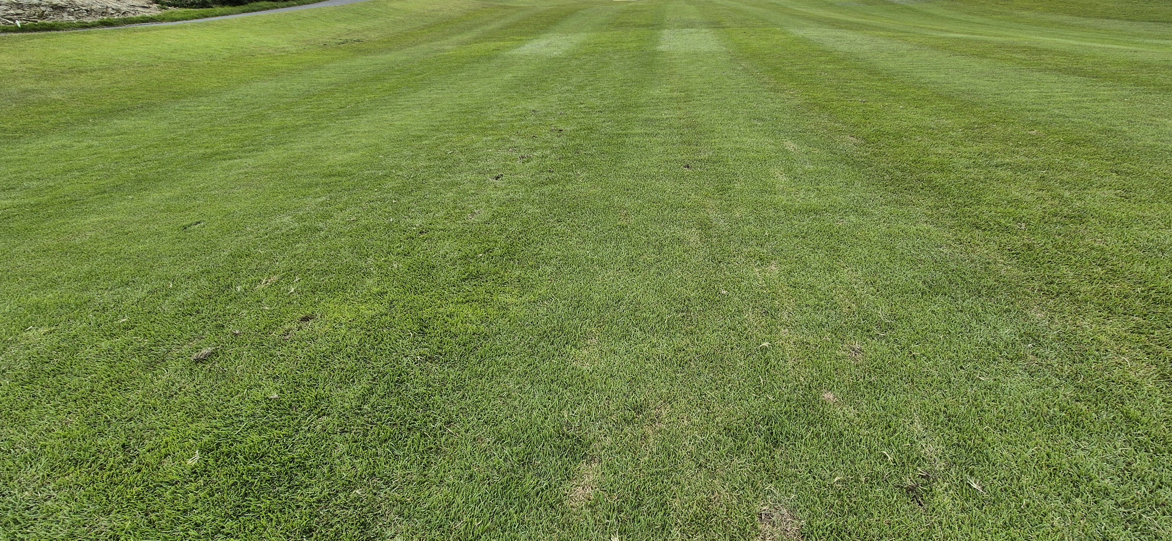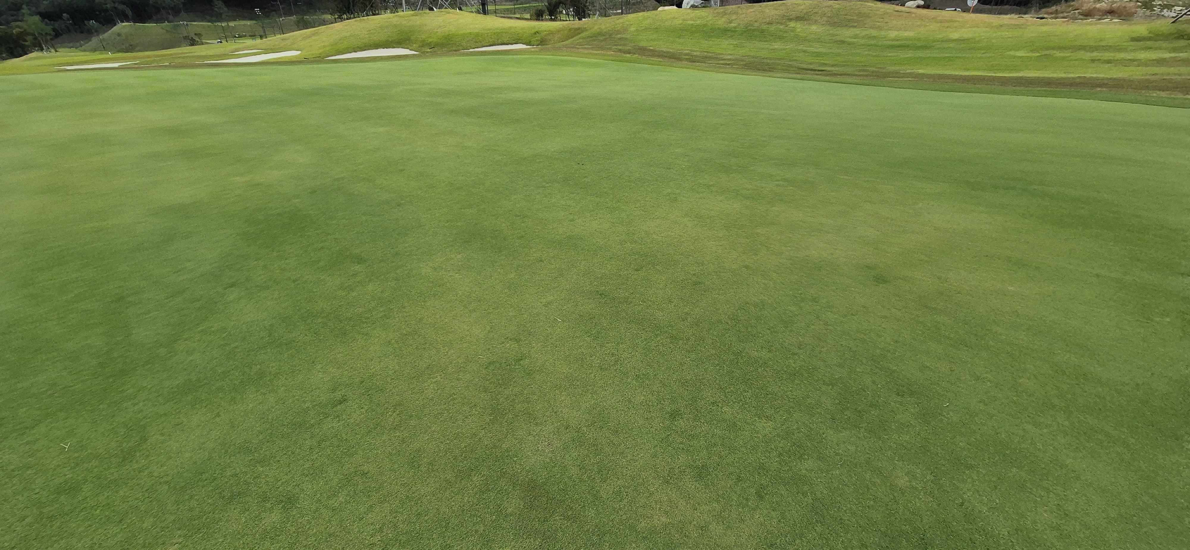 페어웨이는 잔디는 준수한 수준입니다. 러프잔디와 크게 구분되어 있지는 않은 수준. 아직 잔디의 결이 다 정리되지는 못한 것 같지만 신생구장 치고 관리가 잘 되어있는 것 같고, 디봇자국도 많이 눈에 띄지 않습니다.