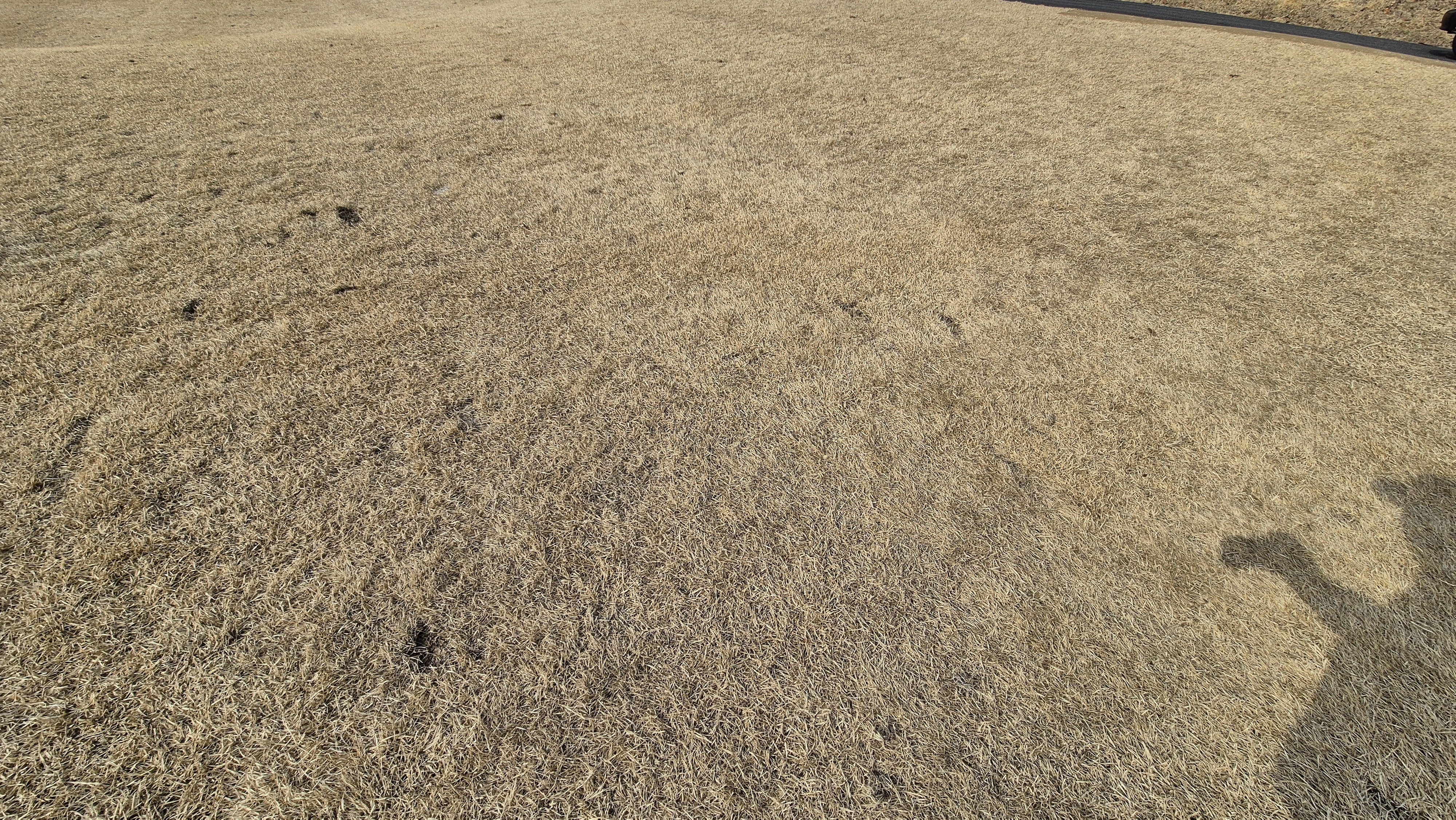 페어웨이 잔디 상태가 나쁘지는 않은데, 전반적으로 아직 겨울에 있는 수준입니다.