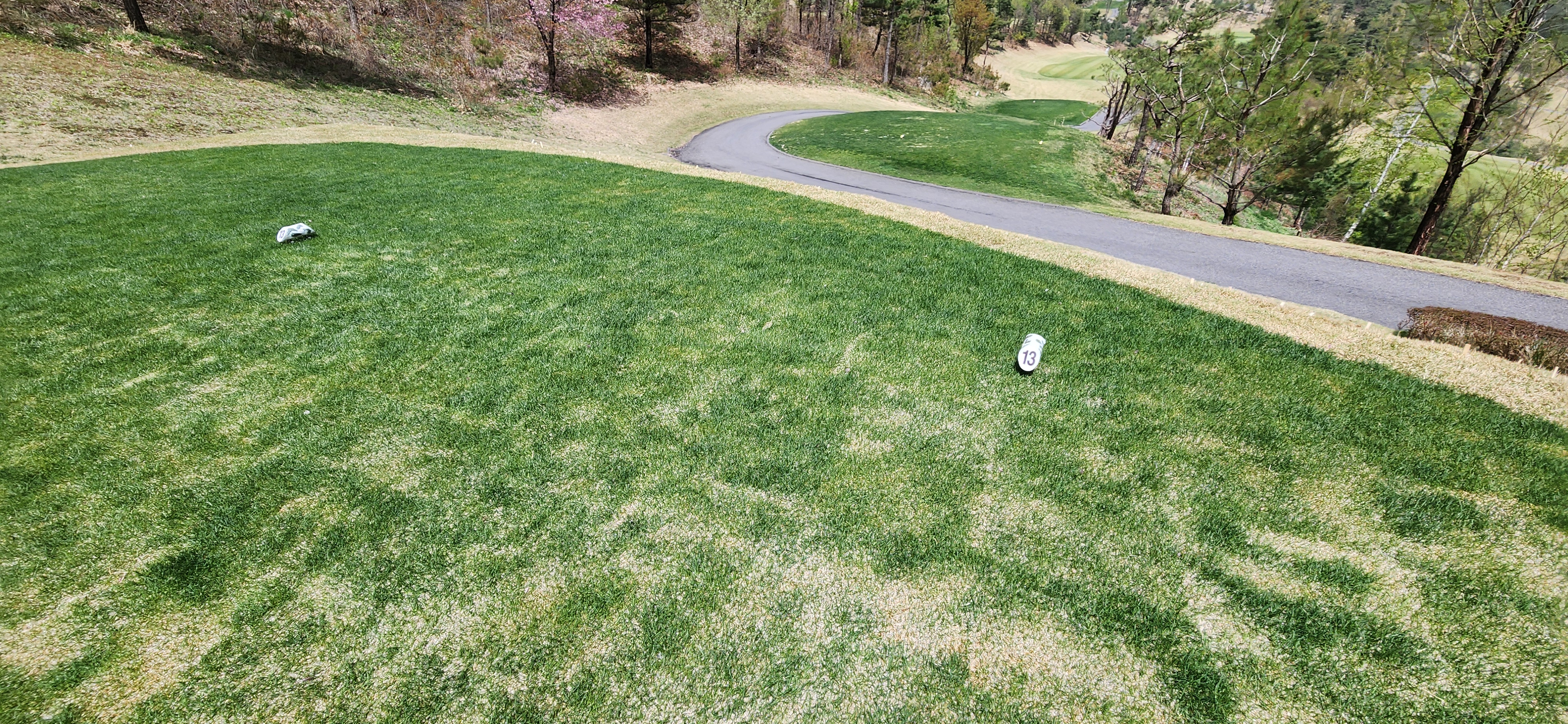 코스 내 잔디관리상태도 기대이상이었습니다. 러프와 페어웨이가 확연한 차이는 아닌 편이에요. 티잉구역을 자주 이동배치해서 랜딩구역의 변화를 주기 때문에 디봇자국은 많지 않은 편이라고 합니다. 근래에 방문했던 구장 중에는 최상의 관리상태라고 할 수 있을 것 같습니다.