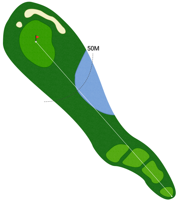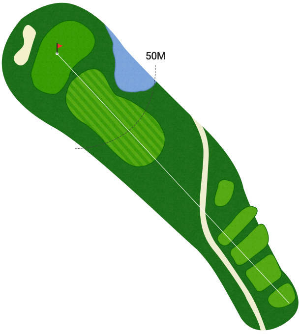 그린 빠르기가 2.4~5m 수준으로 느렸습니다. 단차를 명확하게 구분한 그린은 아닌데 마운드가 꽤 있는 편이고 홀컵 주변에 자잘한 브레이크가 있습니다. 느린 스피드가 아니었다면 상당히 애먹었을 것 같은 그린입니다.
