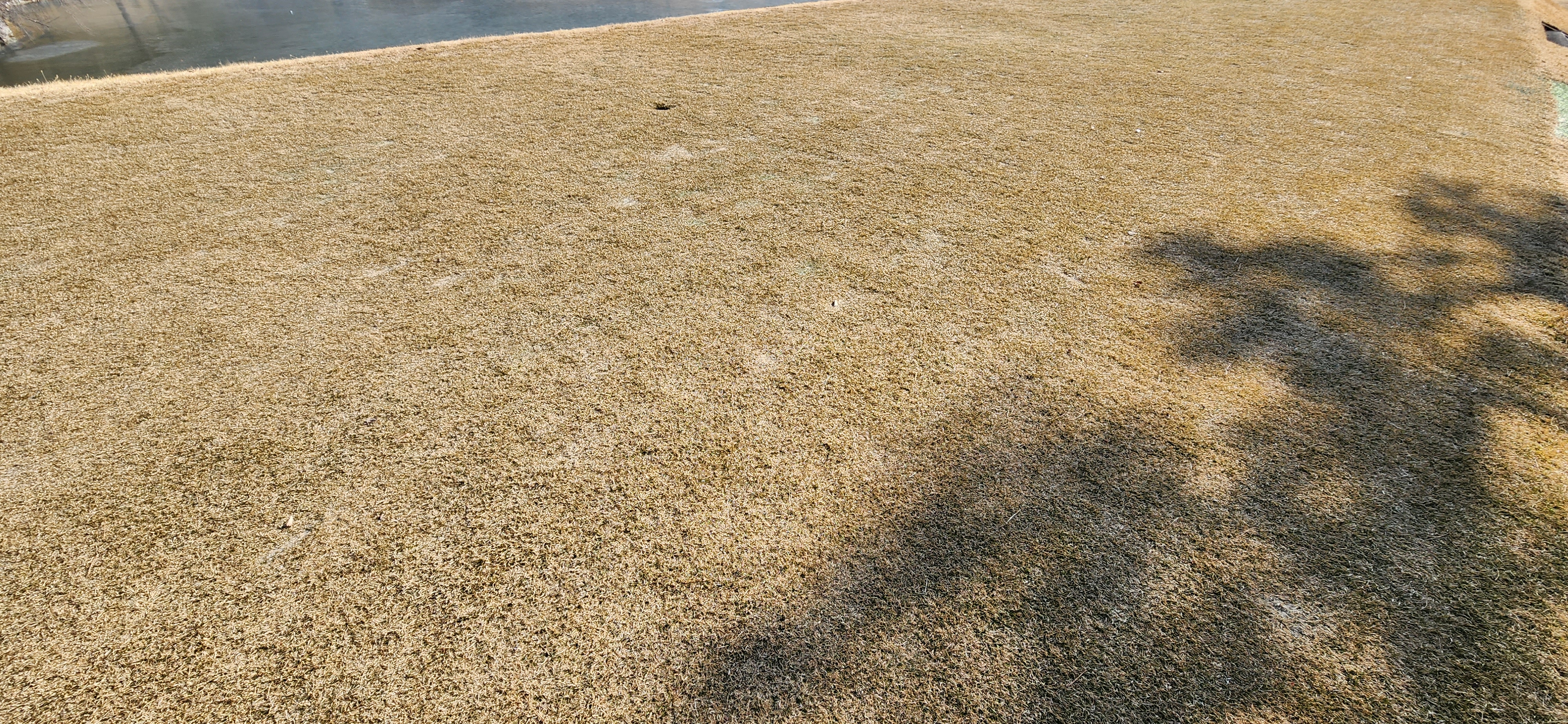 겨울철이라 잔디의 생기가 많이 없긴 해도 걷기가 상당히 편할 정도로 촘촘한 상태네요.