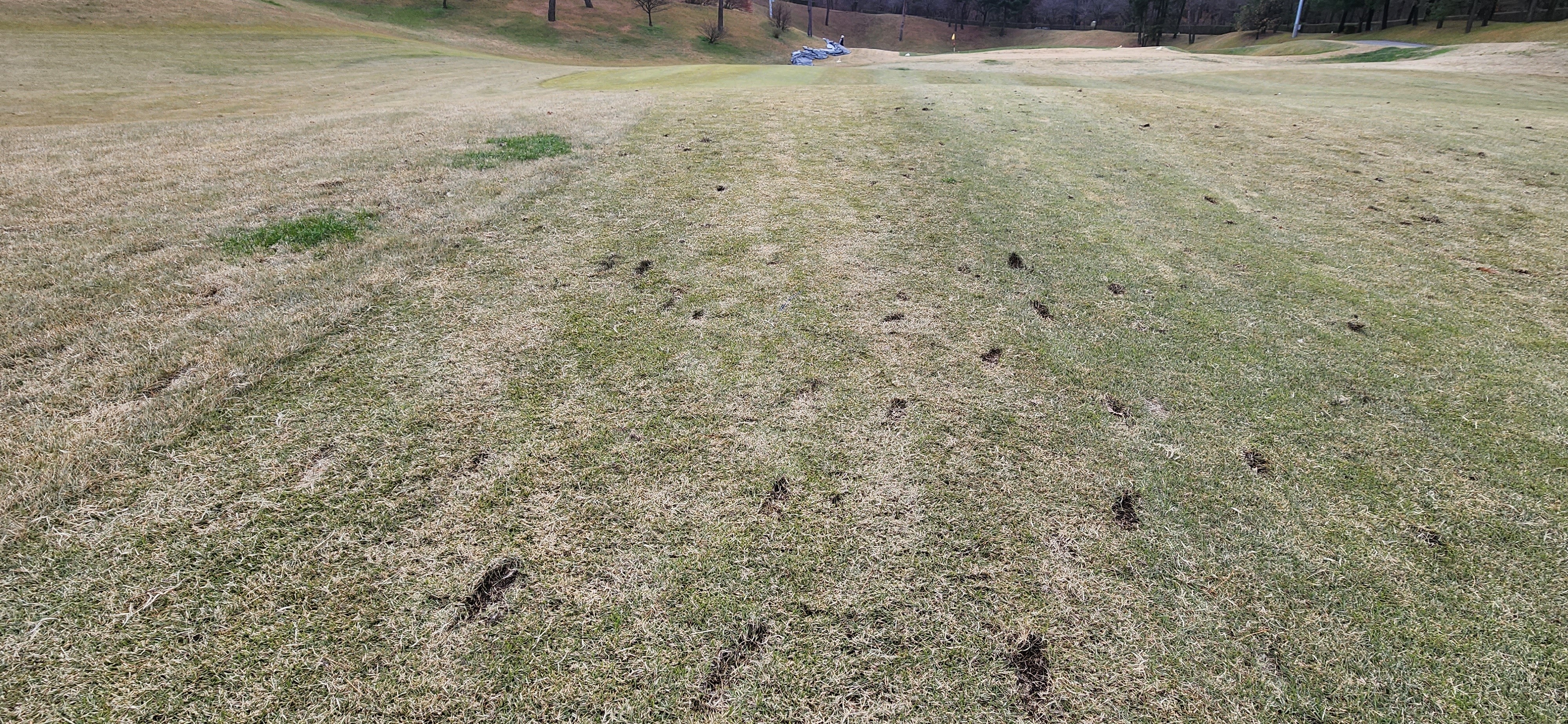 러프의 풀들은 대부분 누워있었고, 위 사진과 같이 랜딩구역 및 특설티구역 곳곳에 디봇자국이 관리 안 된 상태로 있는 상황이었습니다.