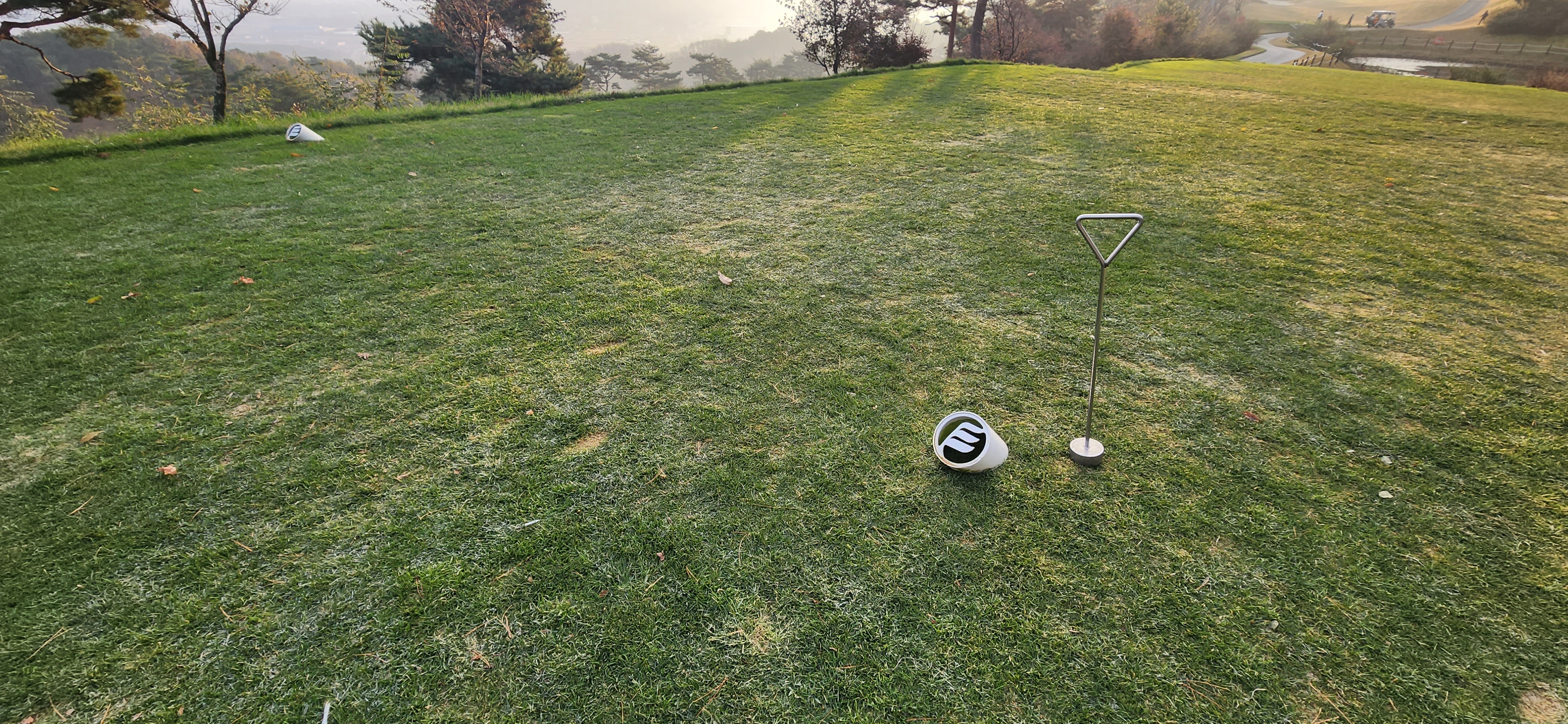 전반적으로 그린 언듈레이션은 어렵다고 느껴지지 않았으나 좌우로 흐르는 그린의 경사도가 센 홀들이 있었고, 일부홀에서는 핀 위치를 2단 그린 초입이나 경사가 변화되는 곳 등에 꽂아 놓으면서 난이도를 유지하는 걸로 느껴졌었습니다.