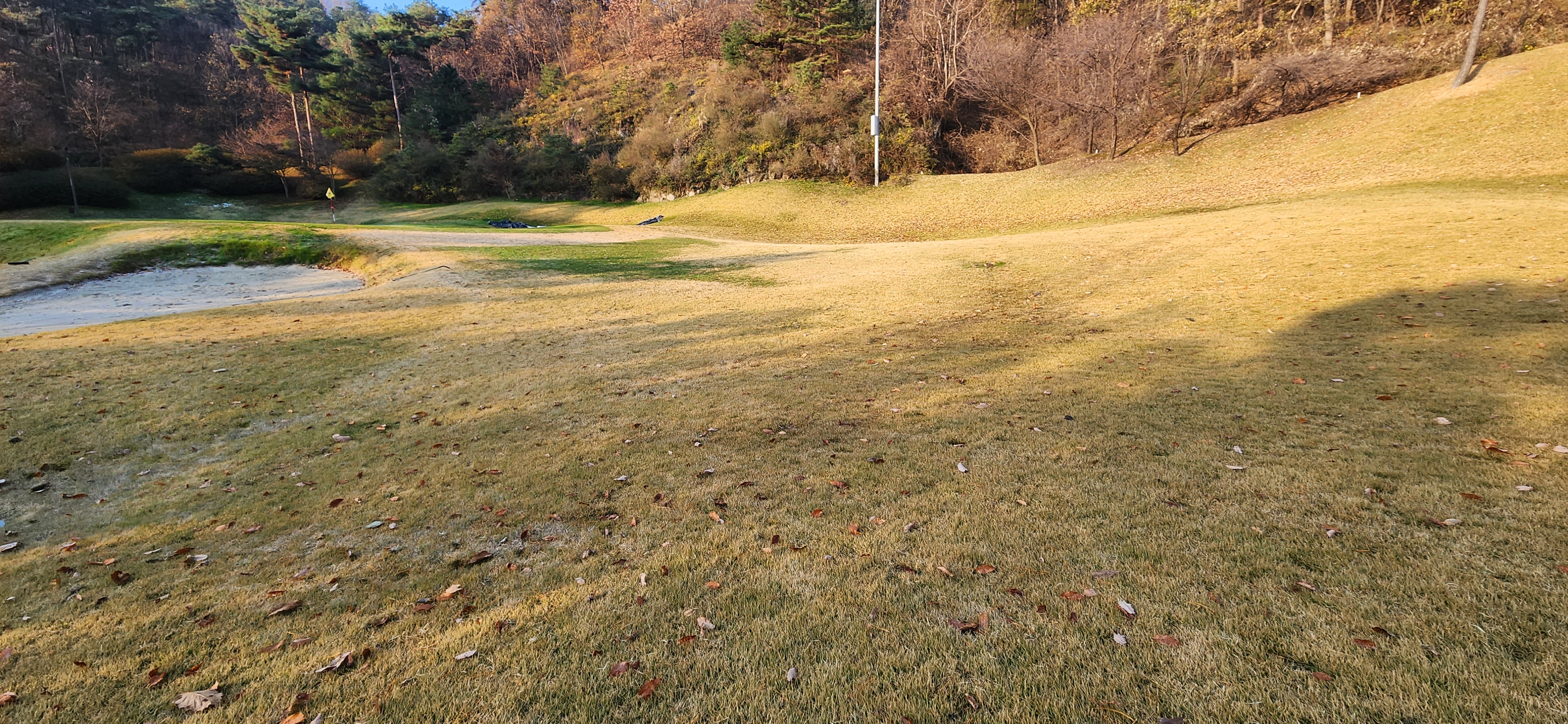 러프의 풀들은 대부분 누워있었고, 위 사진과 같이 랜딩구역 및 특설티구역 곳곳에 디봇자국이 관리 안 된 상태로 있는 상황이었습니다.