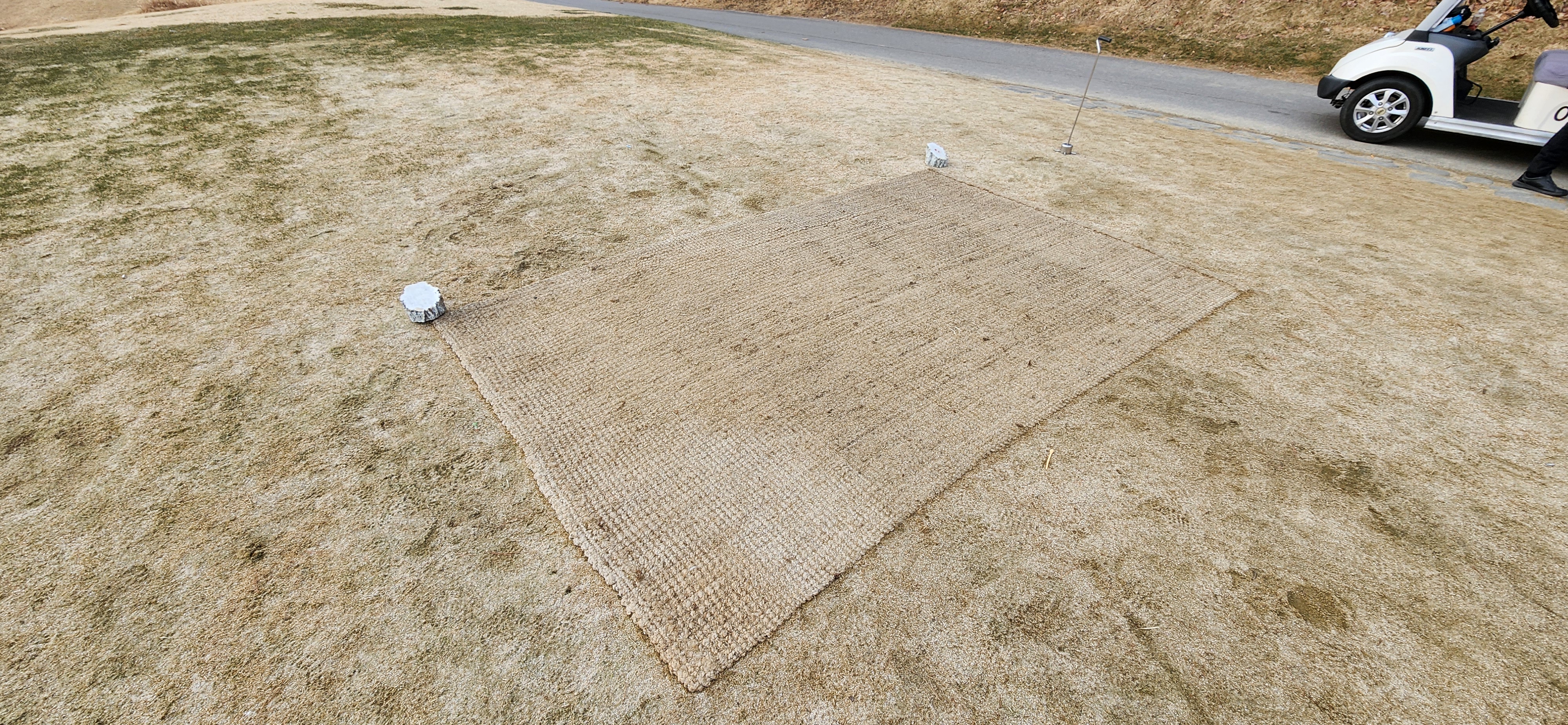 그나마 괜찮은 관리상태 1/3, 관리가 필요한 상태 1/3, 흙바닥상태 1/3 정도의 티잉구역입니다.