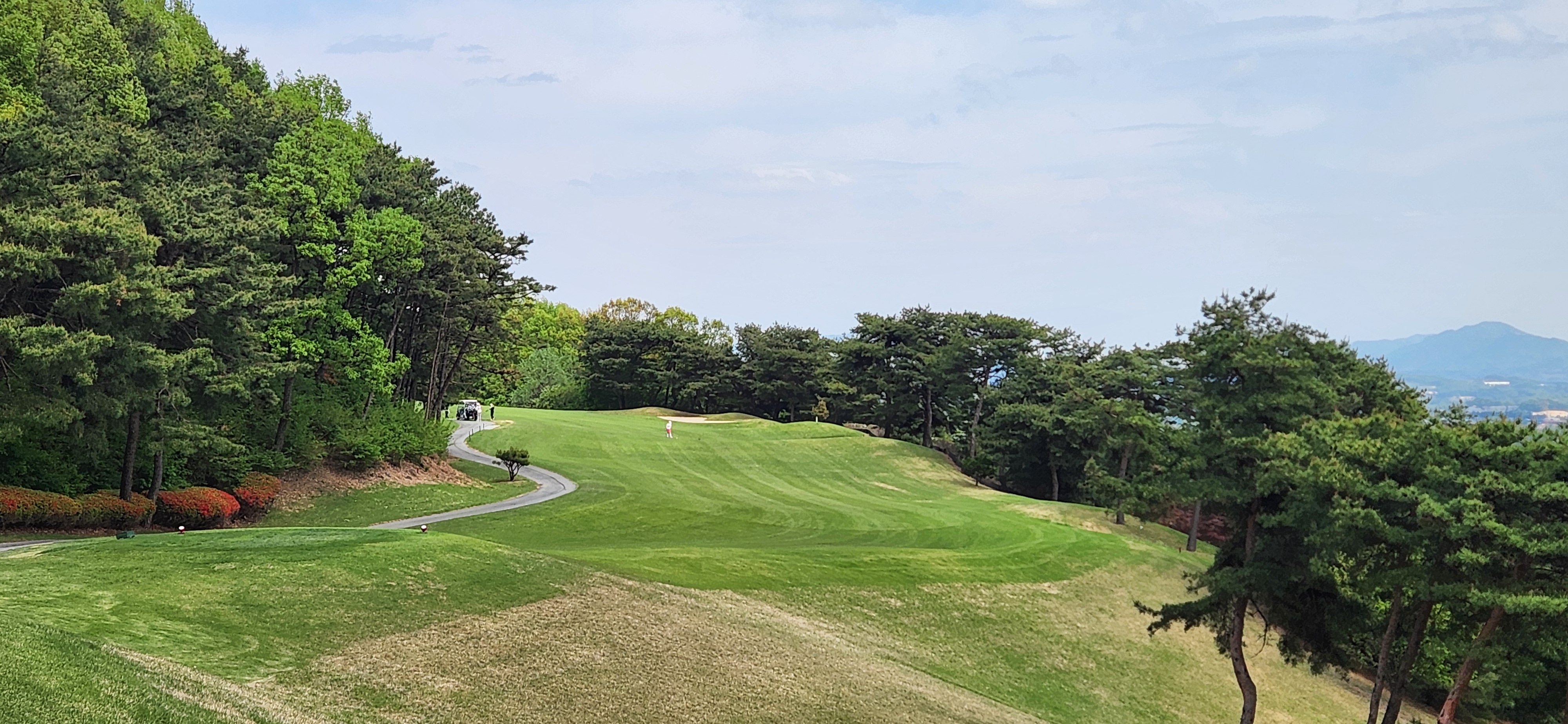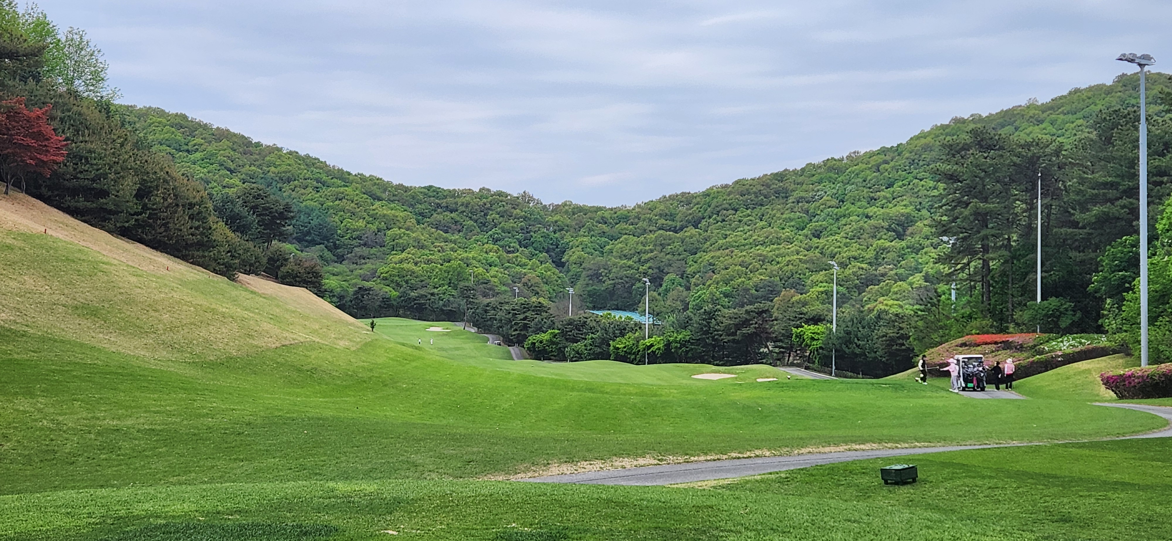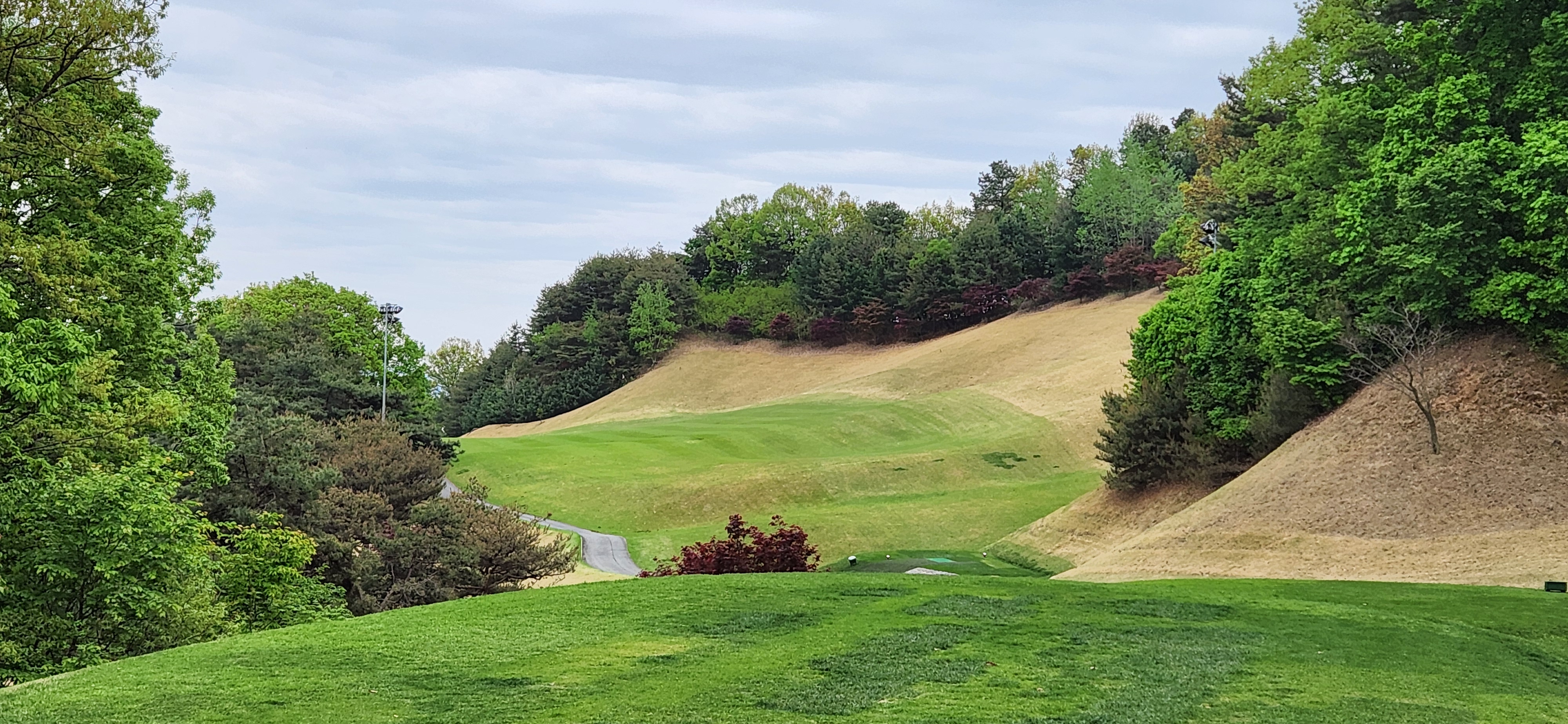 코스는 쉬워 보이지 않는데 그렇다고 좌절감을 맛보지는 않는 정도의 어려움이랄까요? 전반적으로 좁고 긴 코스가 많아서 방향성이 안 좋은 짤순이 골퍼들에게는 자비롭지 않을 골프장 같습니다. 티샷 입구지역에 시야를 가리는 나무와 그로 인해 랜딩구역이 블라인드 된 홀이나 좌우 도그렉으로 넘겨가야 하는 코스 등 다시 생각해 보니 쉬운 난이도는 절대 아닌 구장입니다.