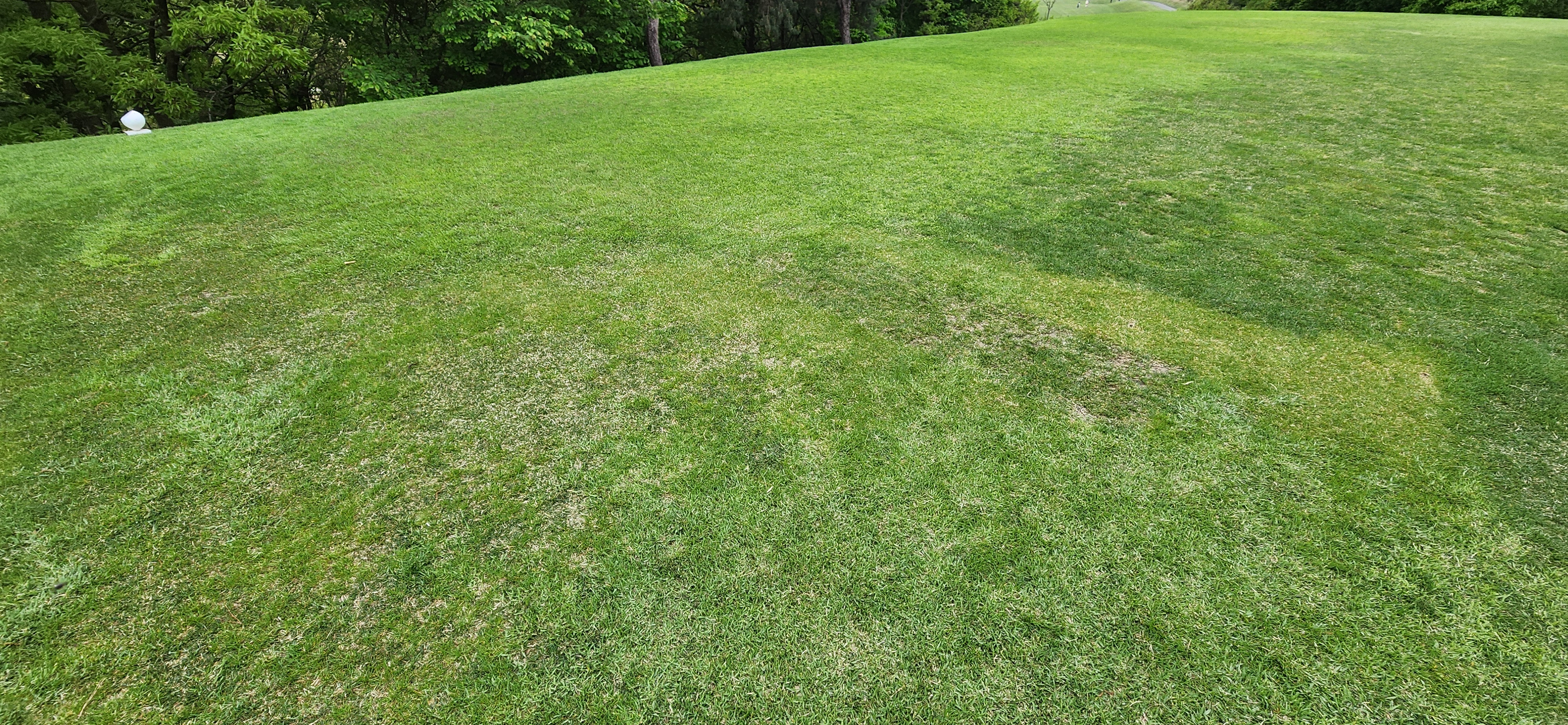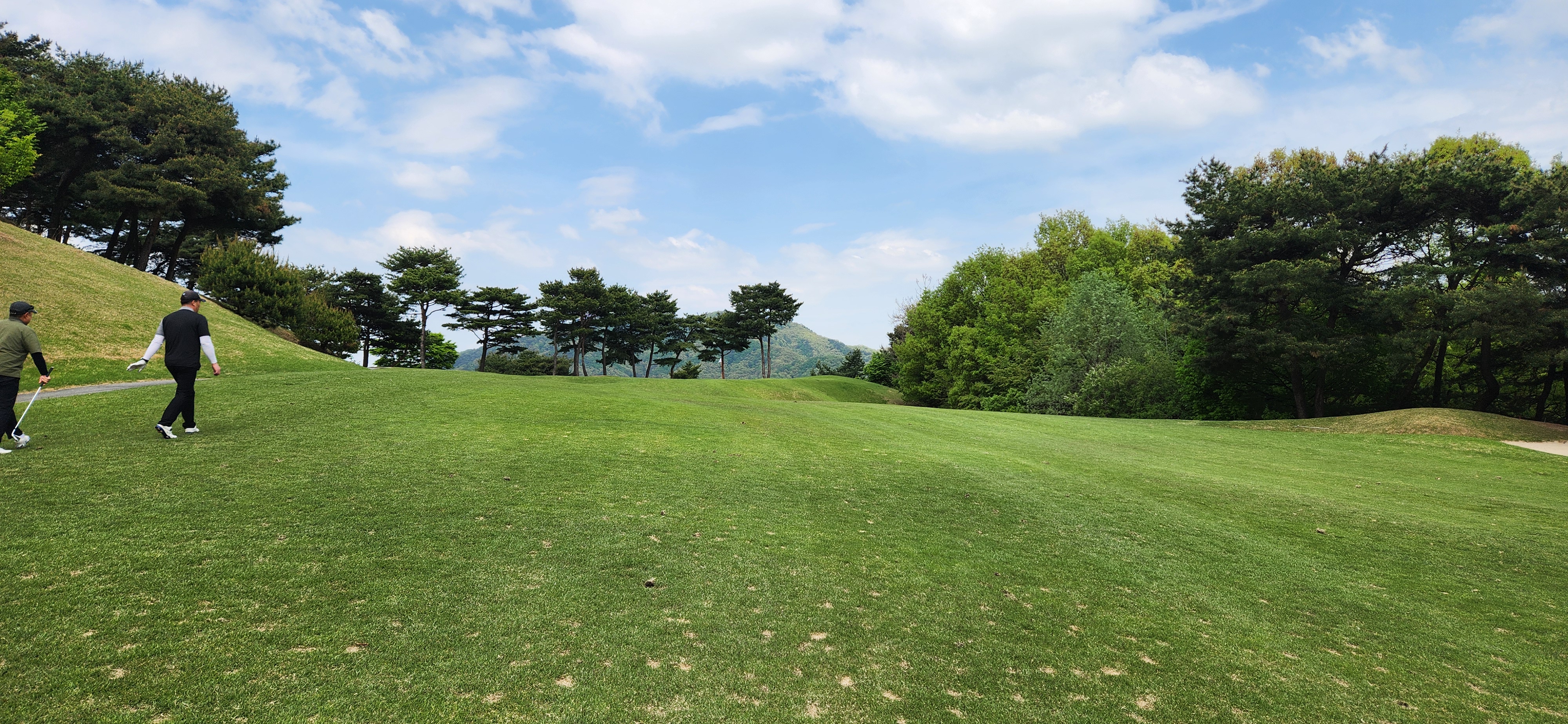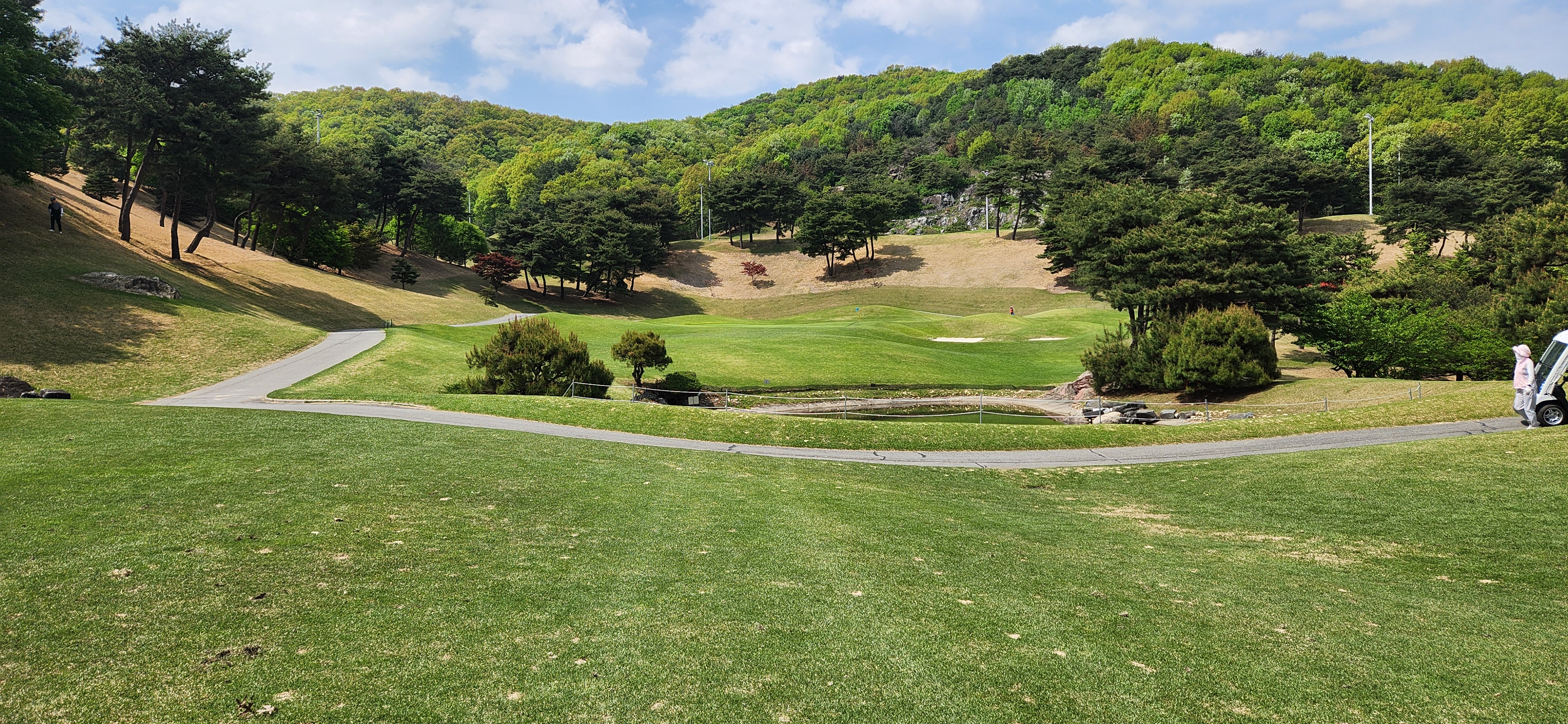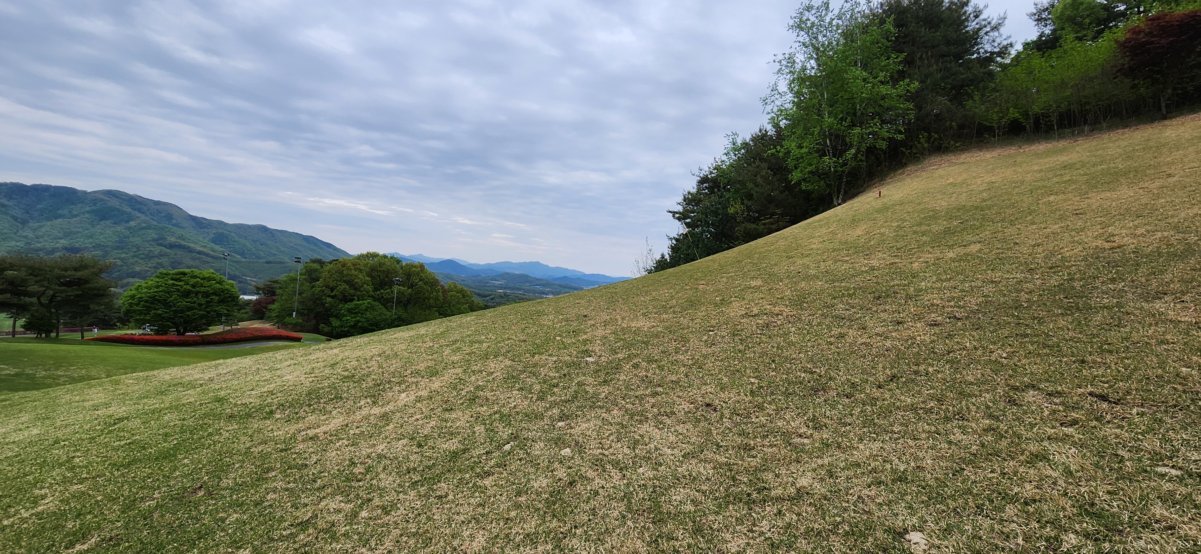 느리긴 한데 잔디 관리상태는 좋았습니다. 경기 중에도 피치마크 관리하시는 분들이 종종 보였고요. 그린 주변 잔디도 타이트하지는 않아서 어프로치가 부담스럽게 느껴지지 않았습니다.