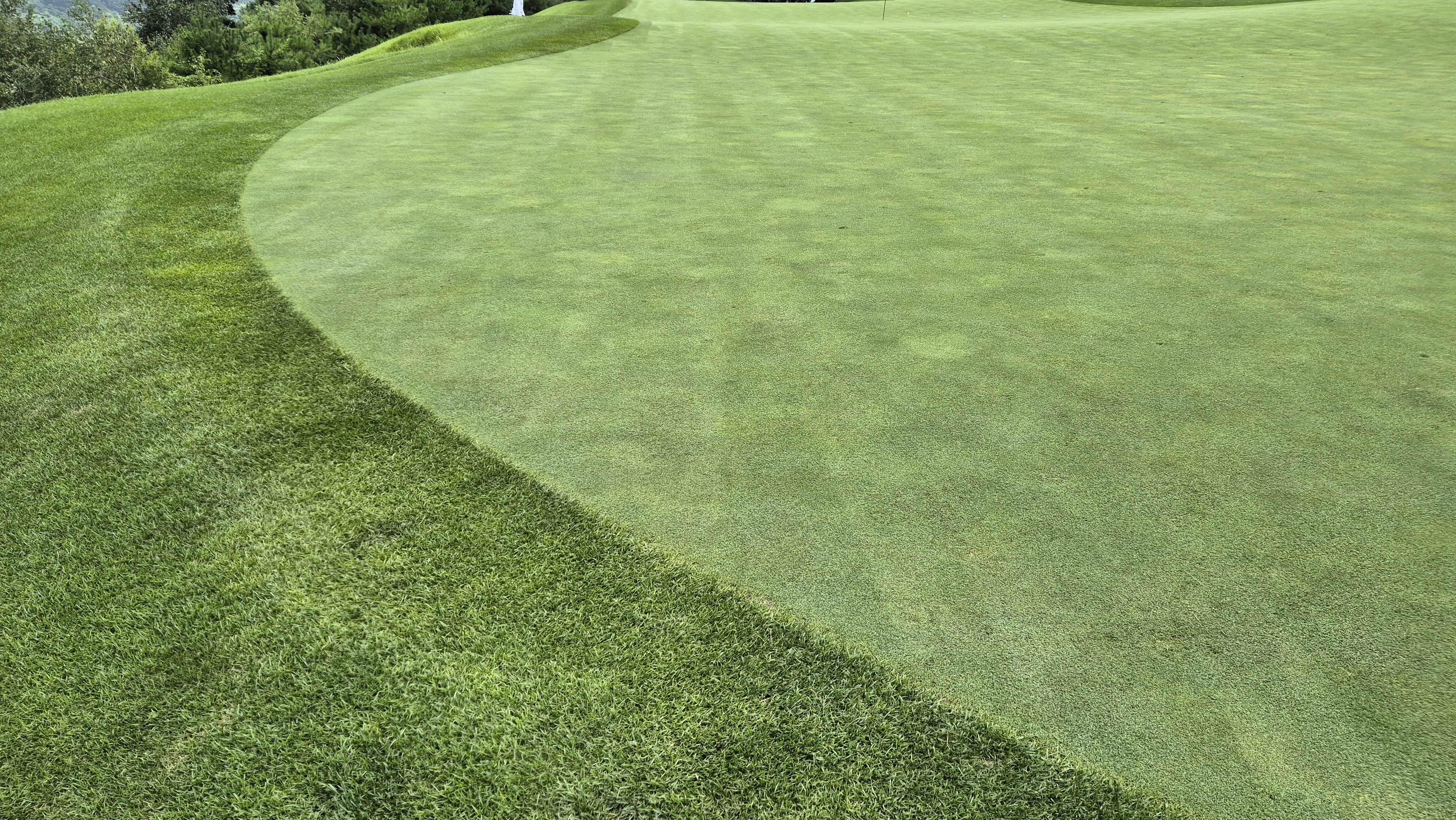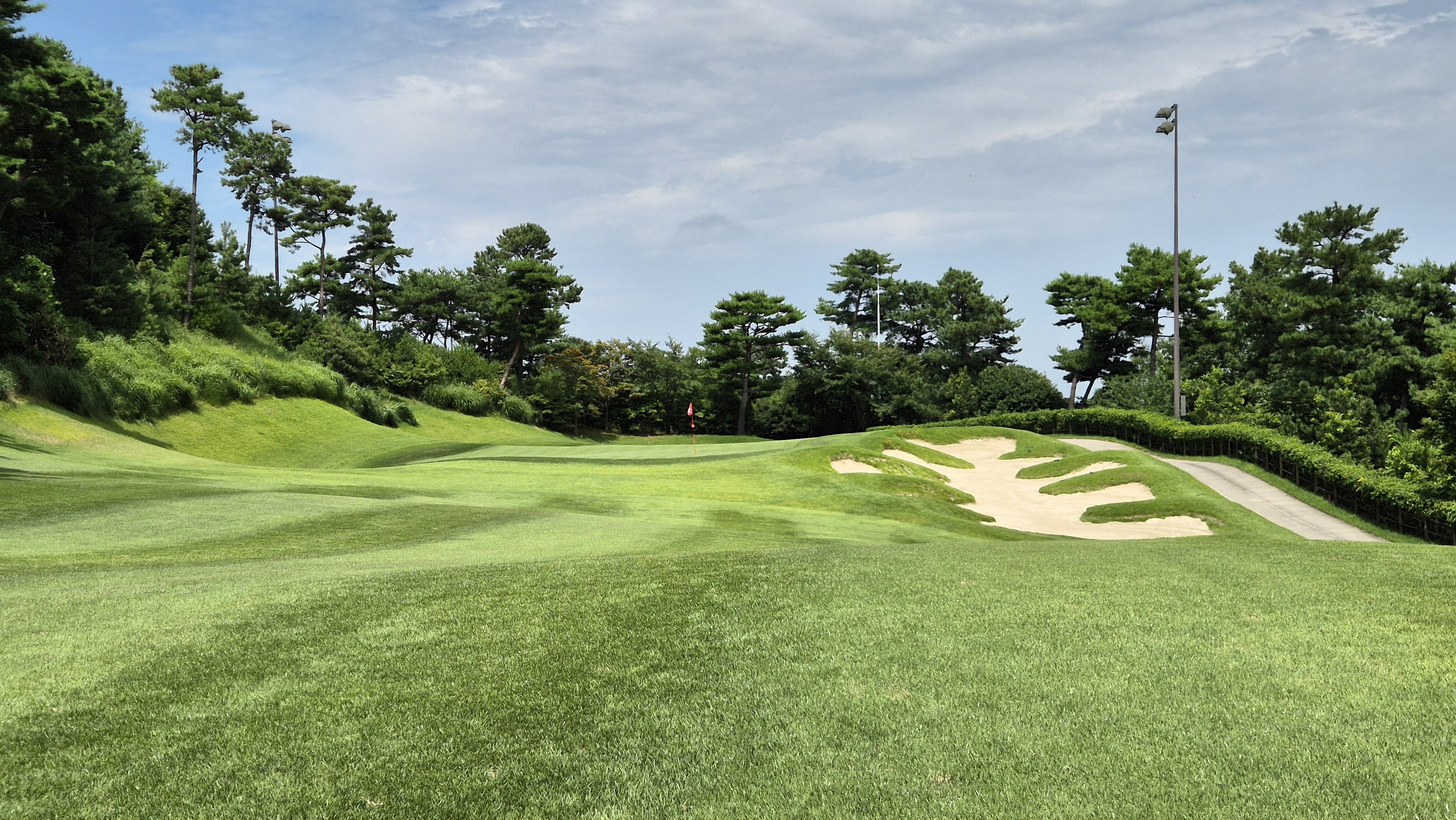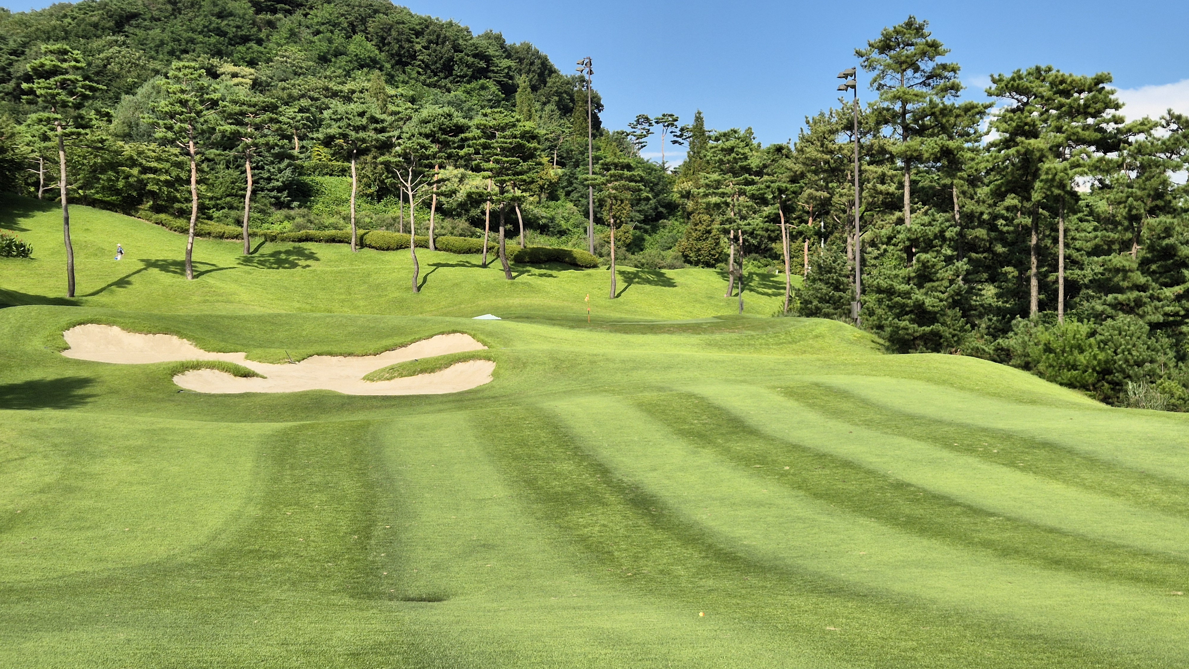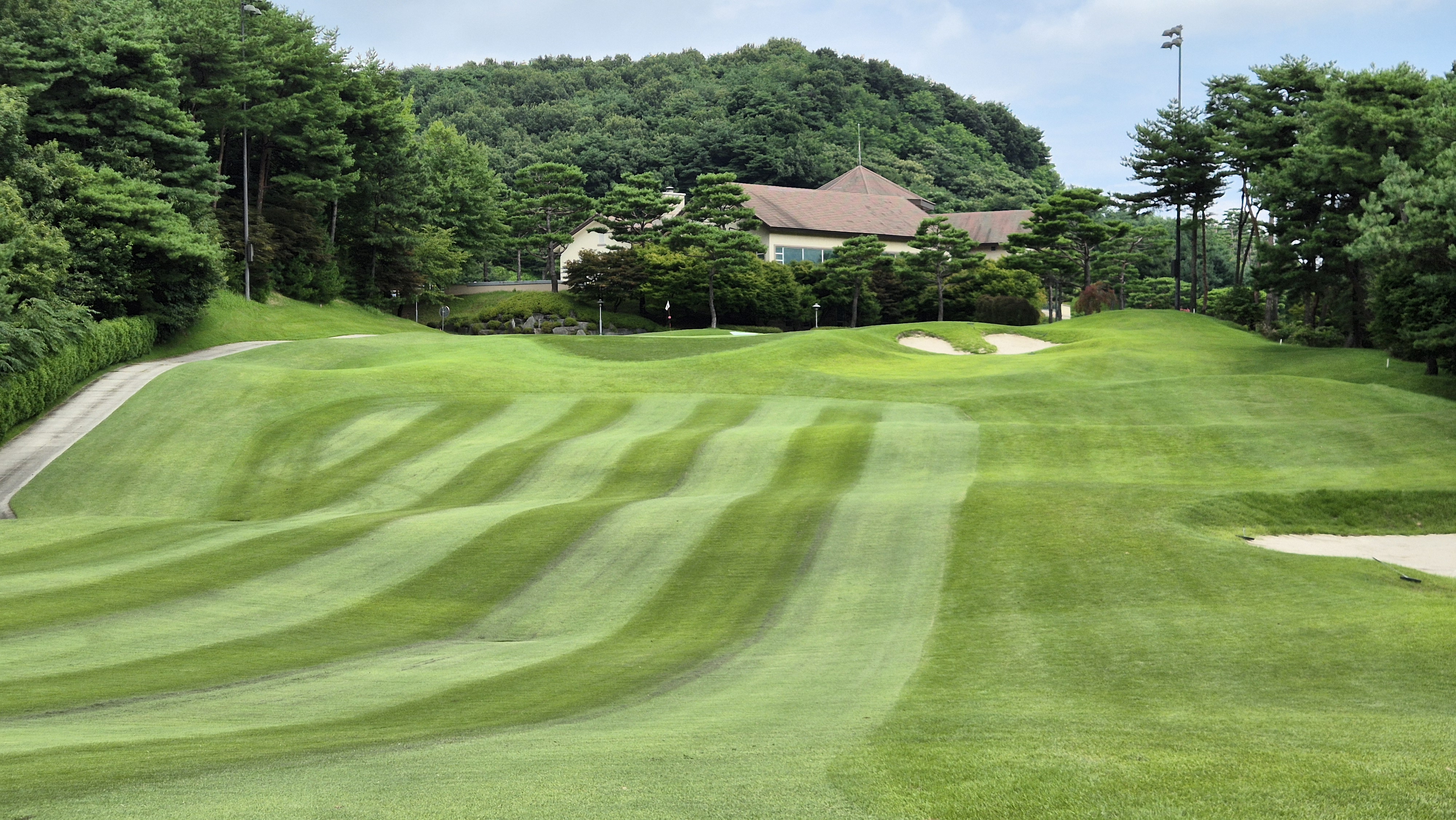 최근 방문했던 괜찮은 골프장들도 여름땡볕 잔디보호 때문에 대부분 2.4m 이하의 느린 빠르기였는데 그린 관리만큼은 상당히 칭찬할 수 있을 것 같습니다. 원래 그런 건지 최근에 내린 비로 인해서인지는 모르겠지만 그린은 살짝 무른 편이었지만 키퍼분들이 계속 관리 중이어서 피치마크가 많이 눈에 띄지는 않았습니다. 웨지샷은 대부분 랜딩 후 2미터 이내에 멈춘 것 같네요.
