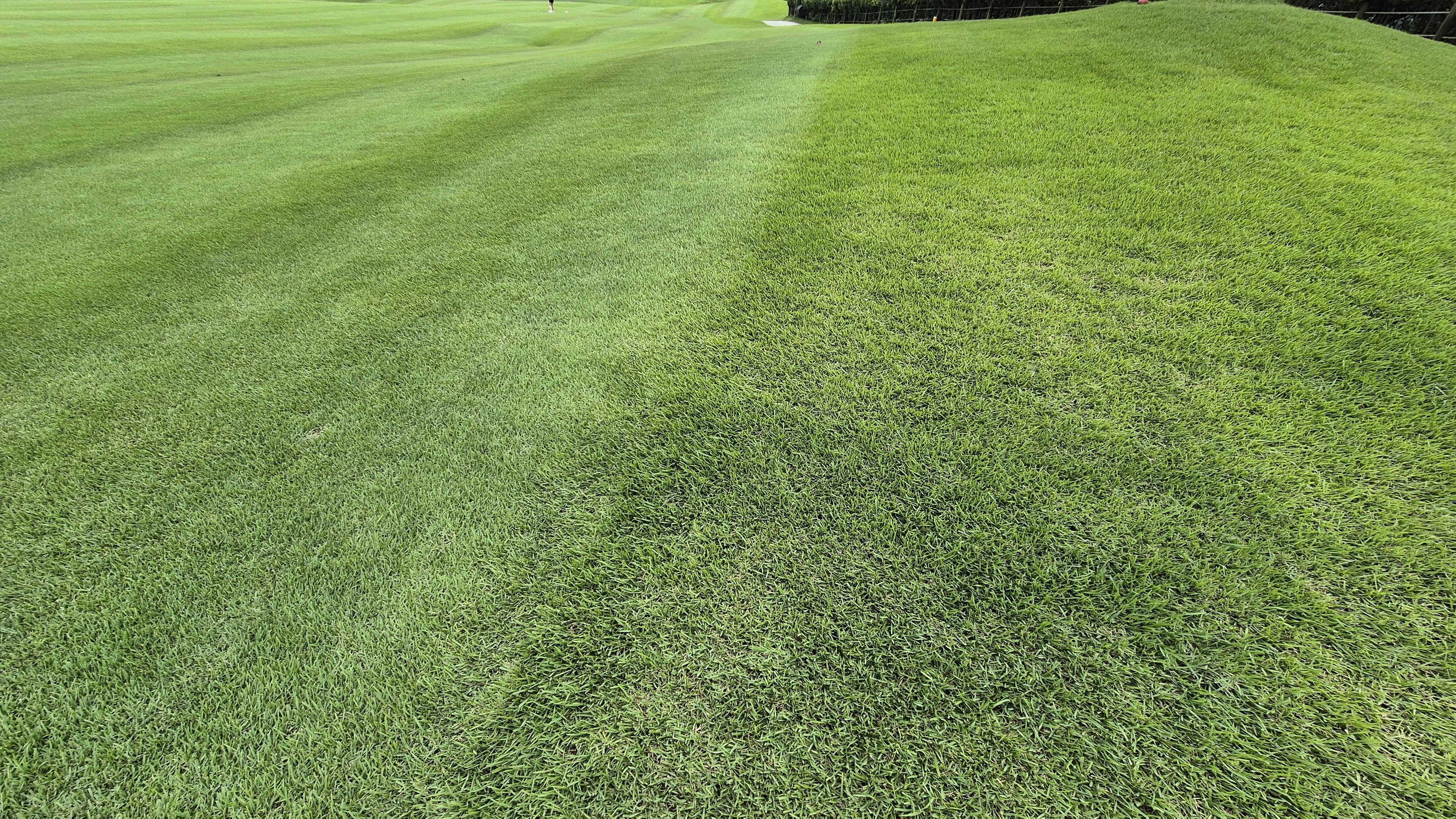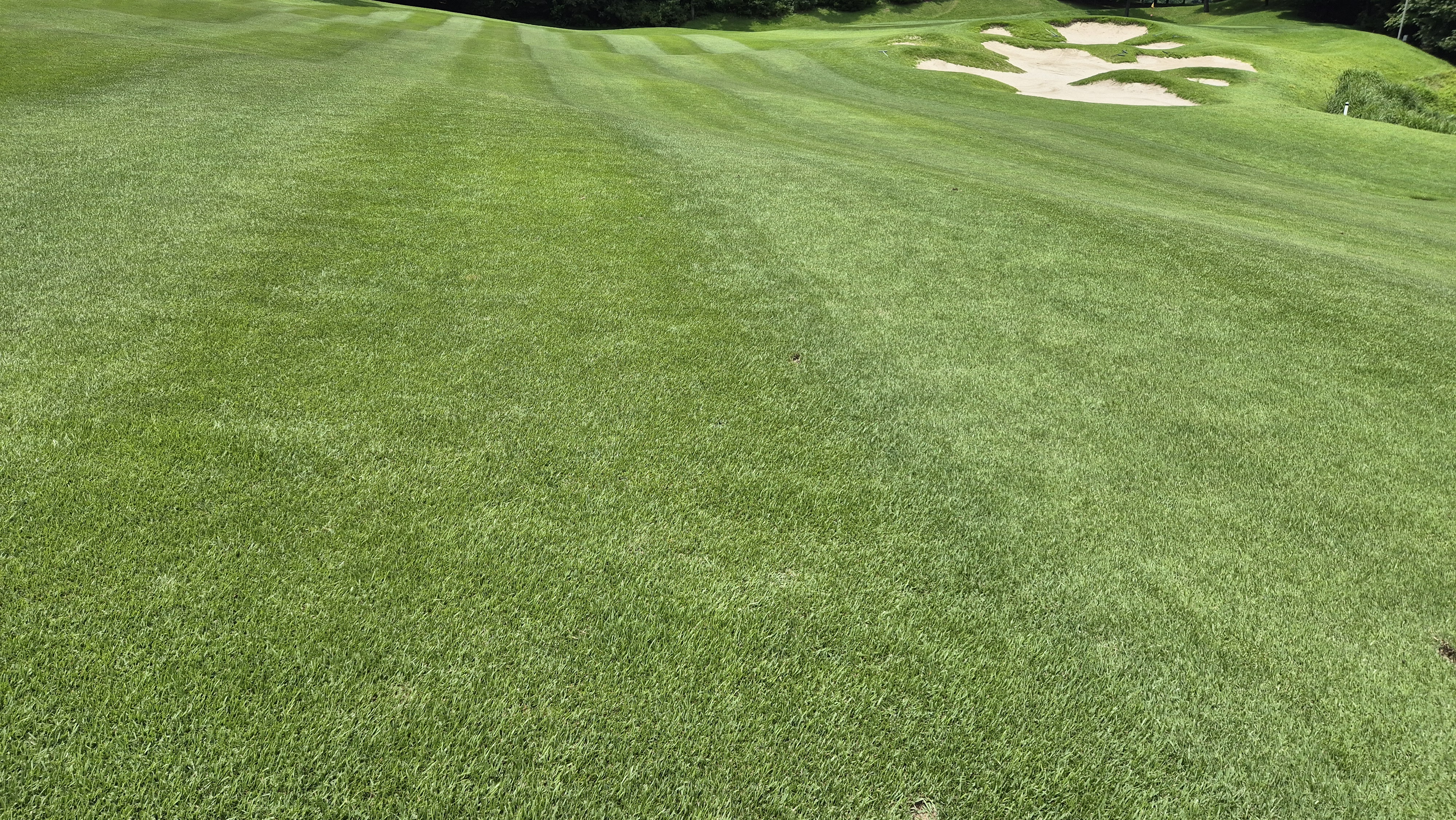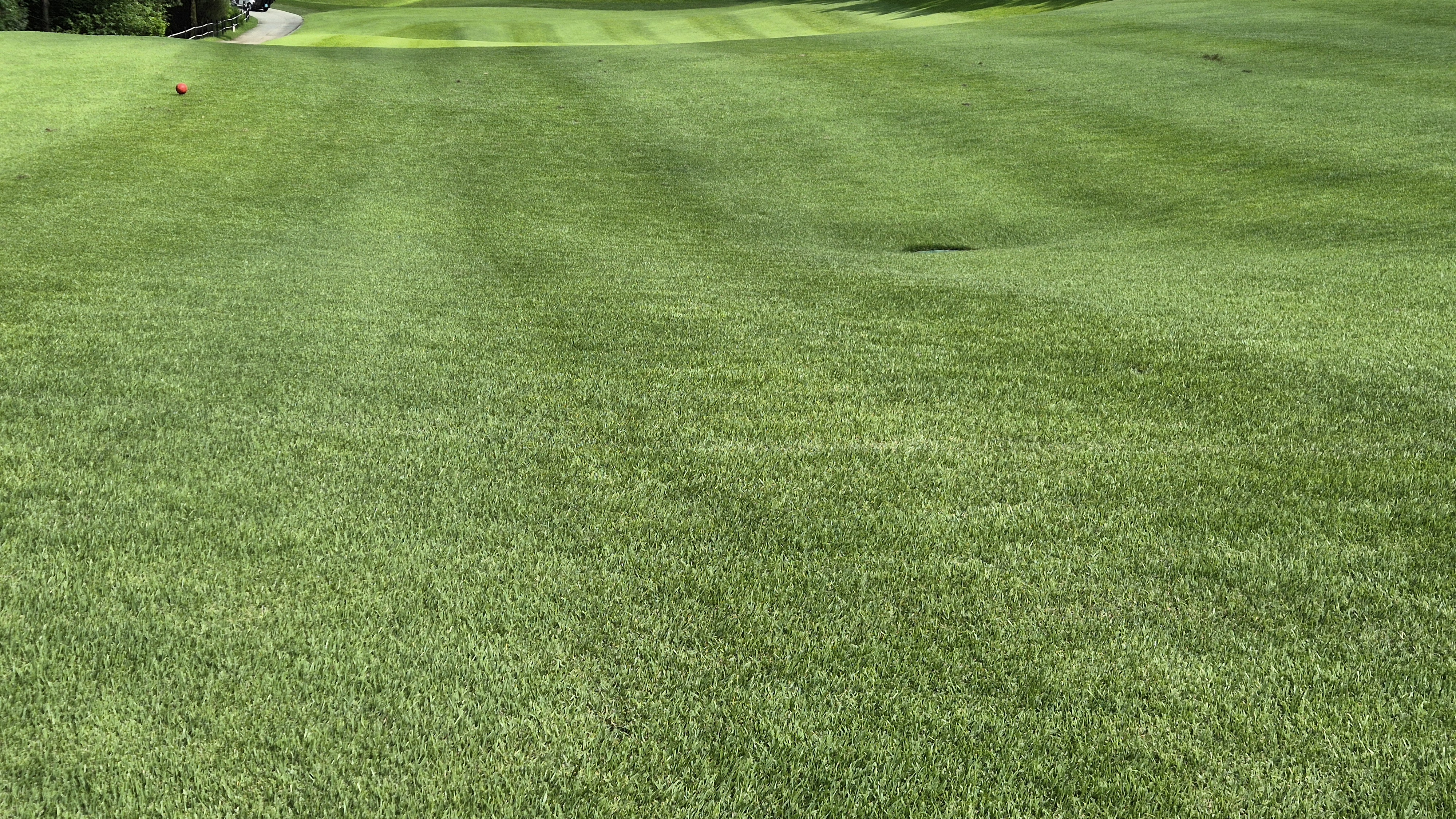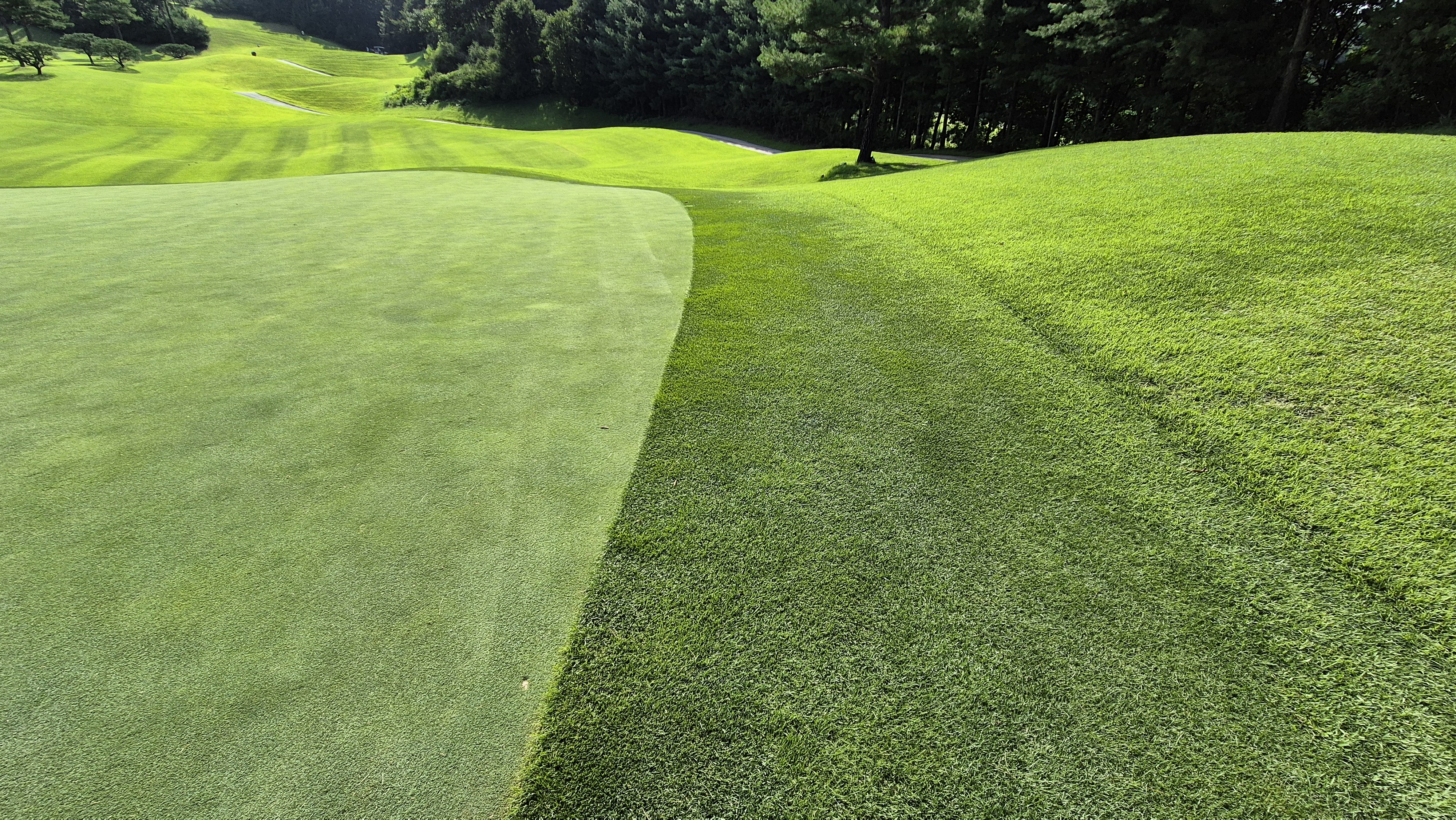 코스 잔디상태는 상당히 좋았습니다. 탈락된 구역도 거의 없었고 빽빽한 수준의 쿠션감도 괜찮은 수준. 페어웨이와 러프잔디의 구분은 없는 편이어서 페어웨이 놓쳐도 부담이 전혀 없는 수준이네요.