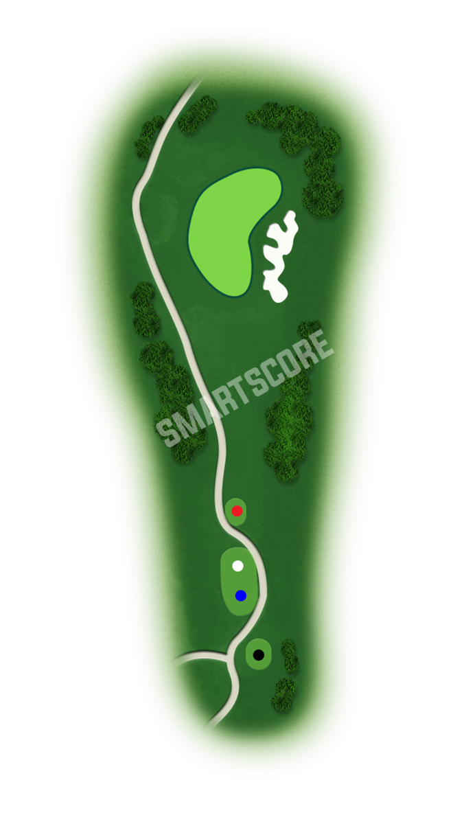 블라인드 파4. 화이트티 이용. 좌측 언덕 경계 방향 티샷이 좋으며 우측 막창거리 210미터 감안한 클럽선택 필요.