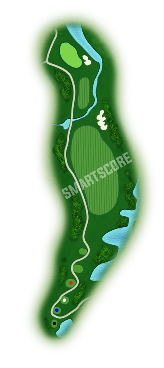 페어웨이 두 곳인 파4. 블루티이용. 화이트티에서는 계류지 우측의 페어웨이로도 공략이 가능함.