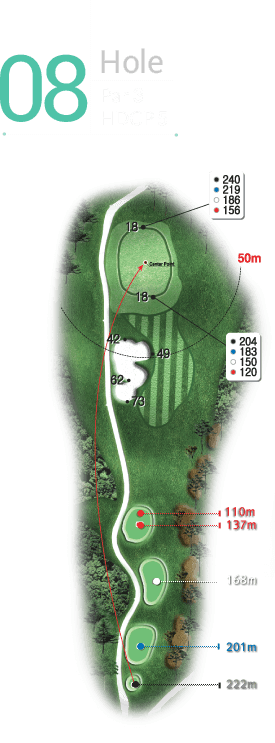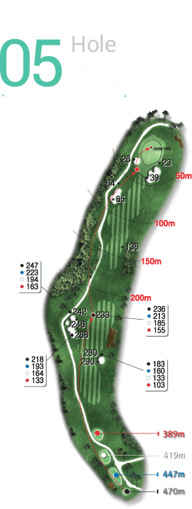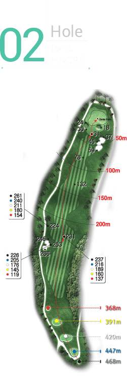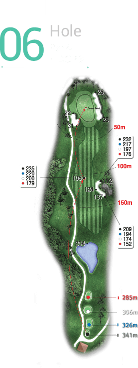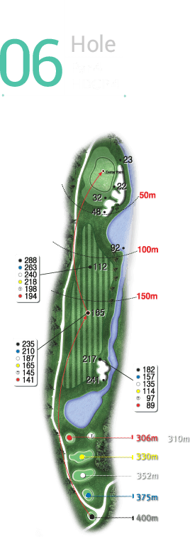 그린스피드 2.5~6m 정도로 플레이했습니다. 그린 자체도 2단 그린에 사이드로 웨이브가 꽤 있는 편인데 핀 위치도 경사지 인근에 꽂혀 있어서 퍼팅할 때 상당히 쫄깃쫄깃한 느낌을 선사해 주네요. 쉽지 않은 그린이니 참조하시기 바랍니다.
