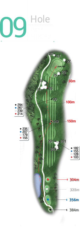 그린스피드 2.5~6m 정도로 플레이했습니다. 그린 자체도 2단 그린에 사이드로 웨이브가 꽤 있는 편인데 핀 위치도 경사지 인근에 꽂혀 있어서 퍼팅할 때 상당히 쫄깃쫄깃한 느낌을 선사해 주네요. 쉽지 않은 그린이니 참조하시기 바랍니다.