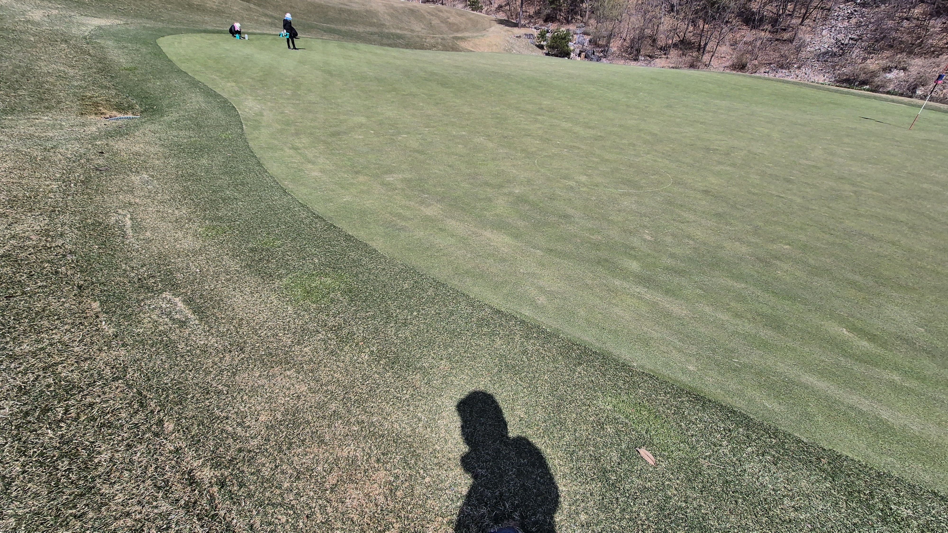 그린 주변 역시 웨지를 사용하기 두려울 만큼 잔디가 탈락된 곳들이 많아요.