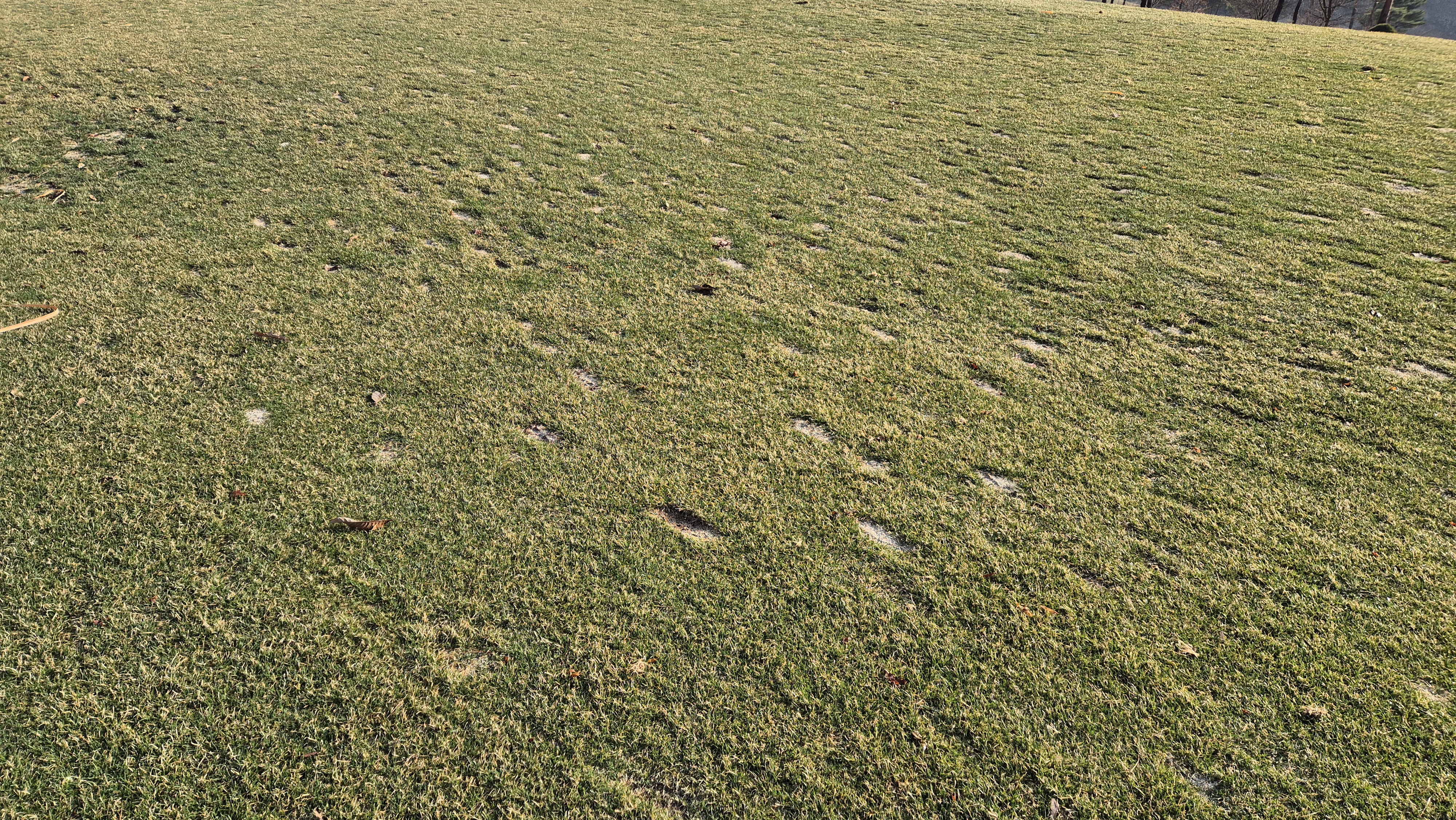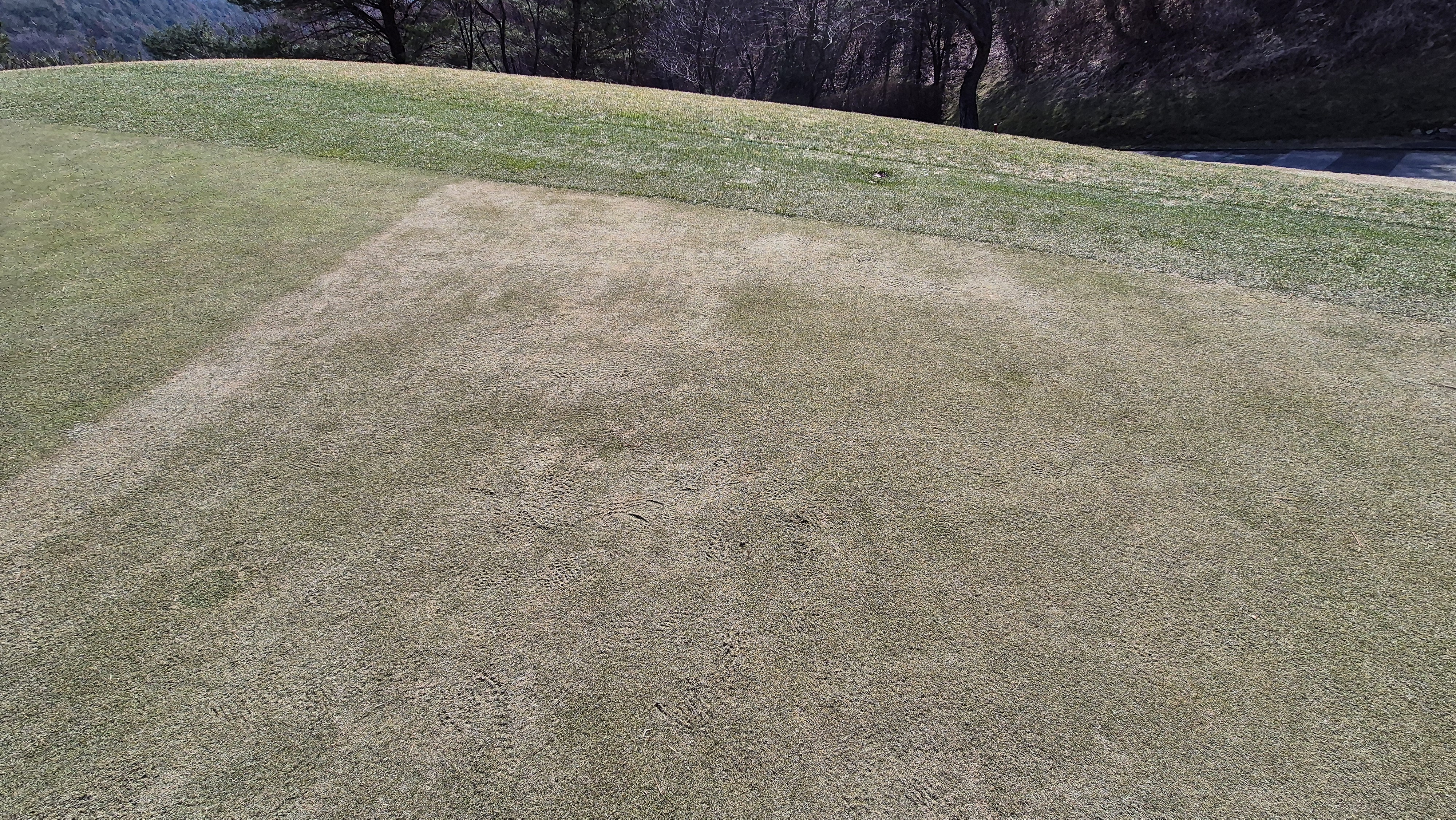 대부분의 상태가 사진과 같다고 보시면 됩니다.디봇자국은 기본값이고, 잔디상태도 매우 불량한 상태.
