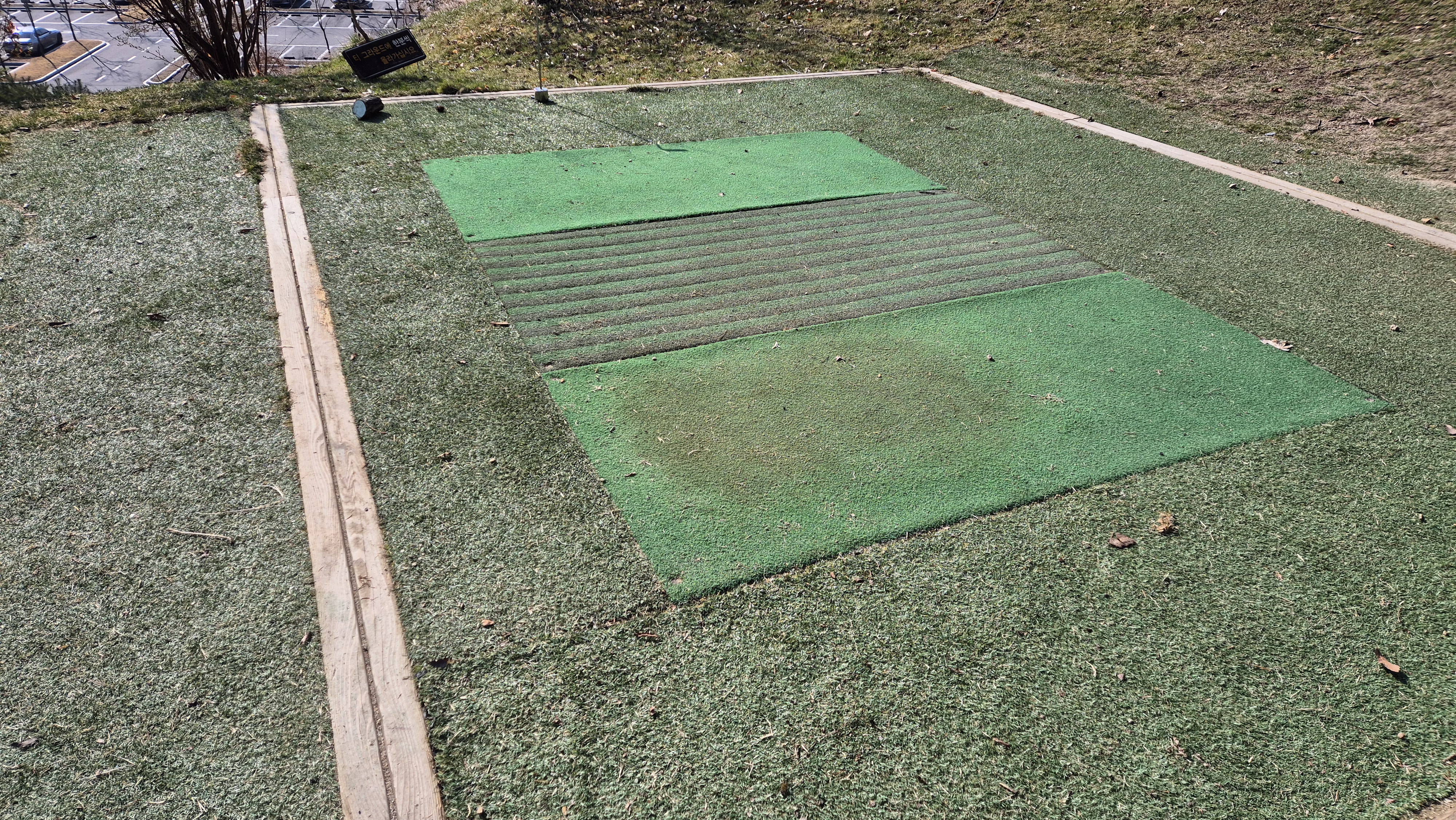 엉망입니다.잔디보다 흙이 더 많아요.파 3홀 매트 상태도 불량합니다.