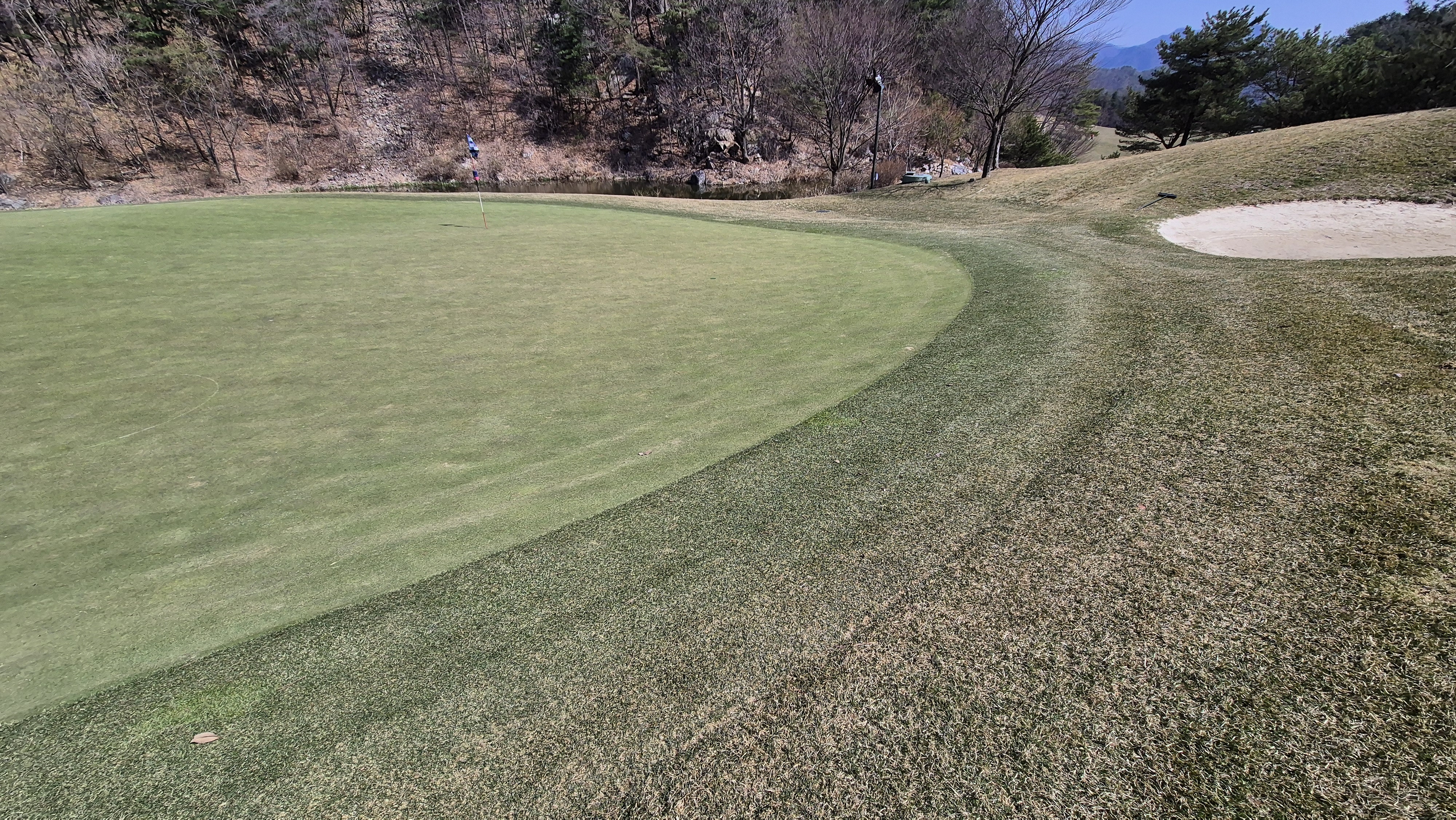 그린 주변 역시 웨지를 사용하기 두려울 만큼 잔디가 탈락된 곳들이 많아요.
