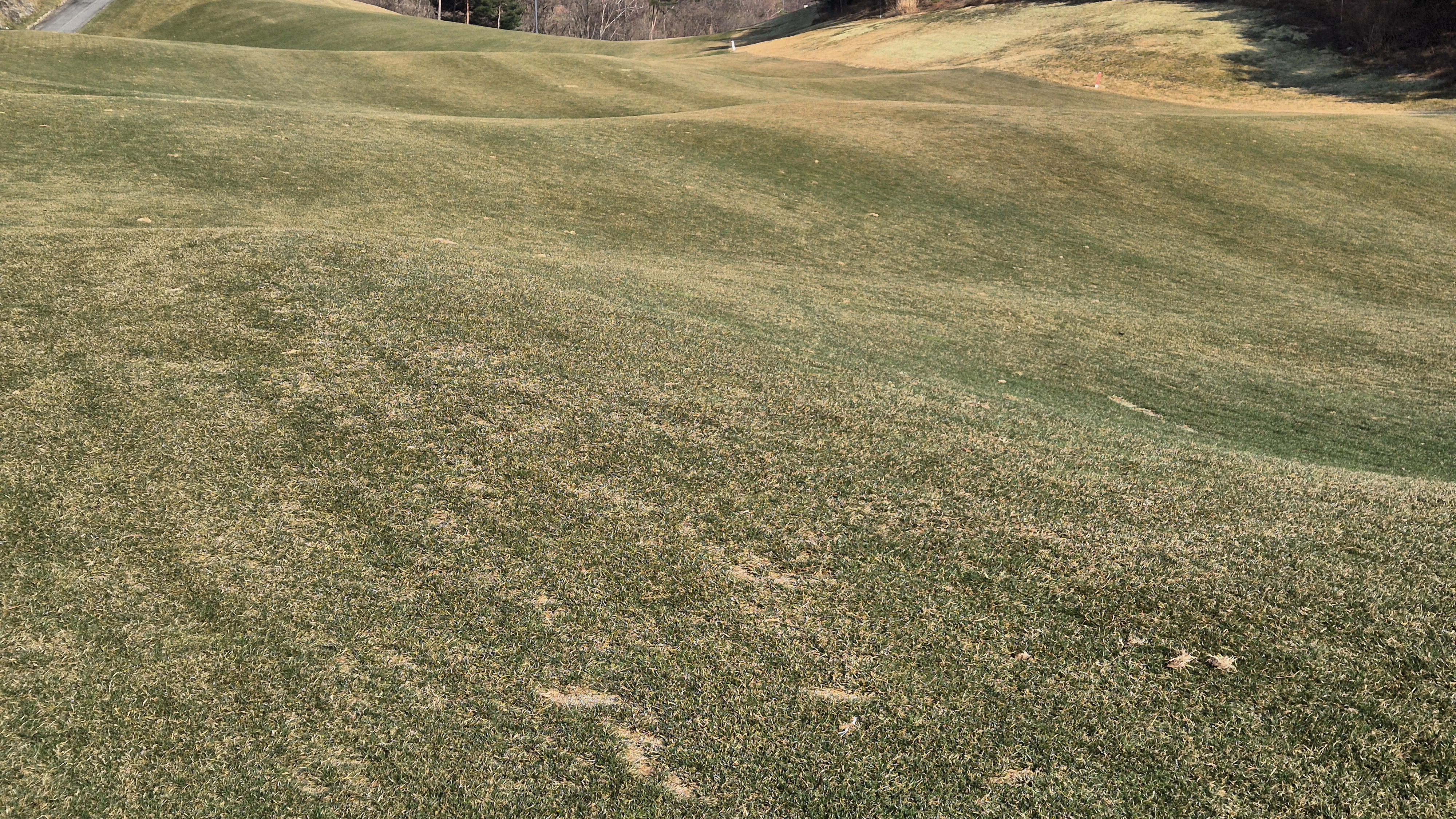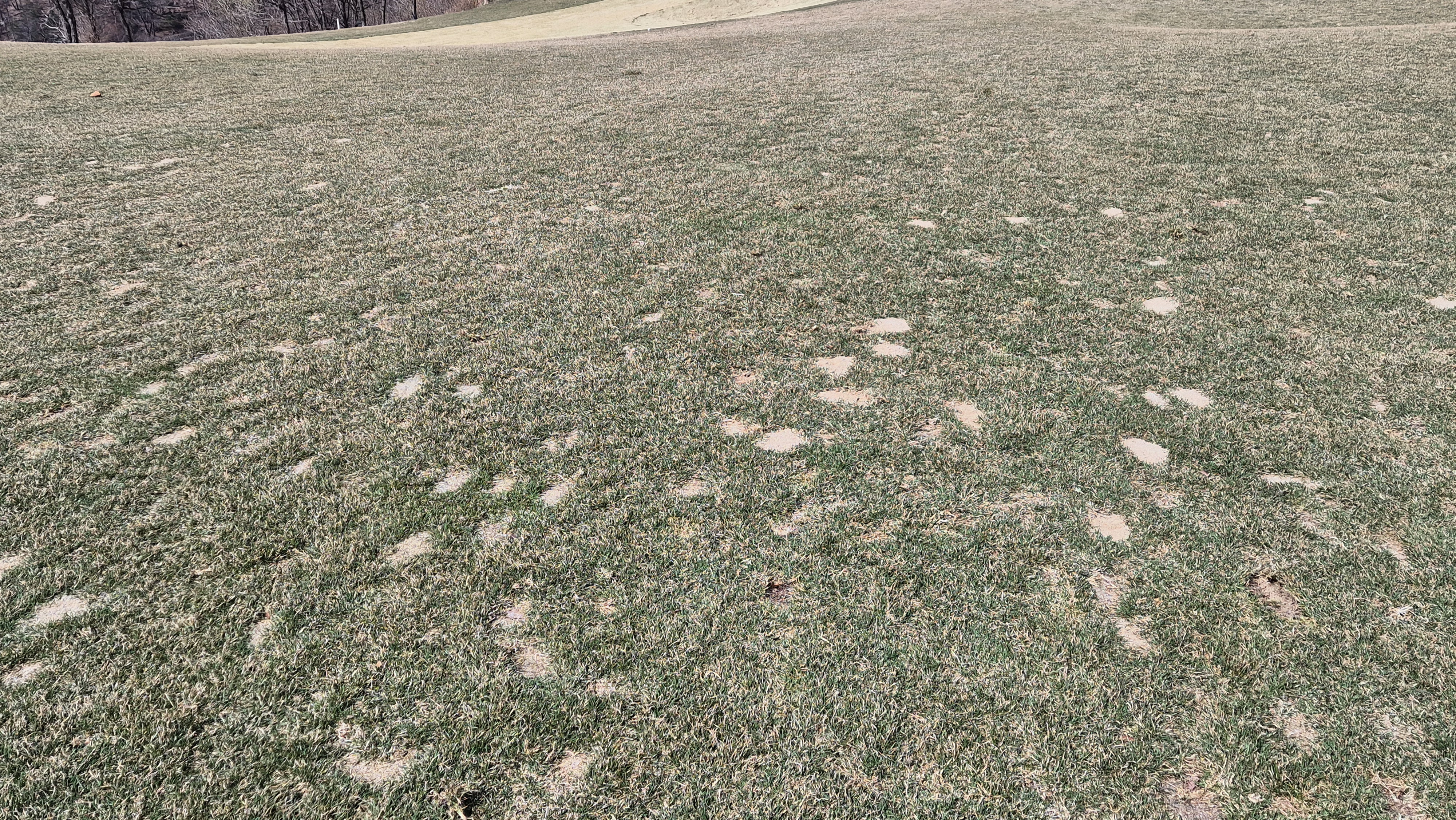 대부분의 상태가 사진과 같다고 보시면 됩니다.디봇자국은 기본값이고, 잔디상태도 매우 불량한 상태.