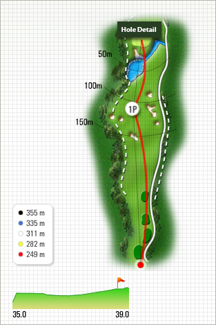 짧은 홀이고, 막창까지 250미터 거리라서 굳이 드라이버 잡지 않아도 좋습니다.